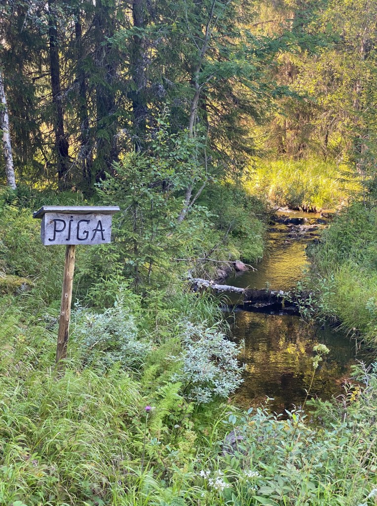 Vi var till Gammbodarna norr om Åsen en gång och såg att det gick en märkt led till Borgen, 9 km. Dit måste vi. Bara namnet drog ju. Nu tog jag bilen istället från Brunnsberg och norröver och siktade in mig på Pigan, en liten bäck som vägen korsar. Bra med GPS, men det fanns även en skylt Pigan vid bäcken. Strax därefter skulle jag parkera och cykla västerut till Lekstjärnen (stavas även Lextjärnen ibland). Från tjärnen är det en gångstig på ca 1 km fram till Borgen. Gammal fäbodstig.