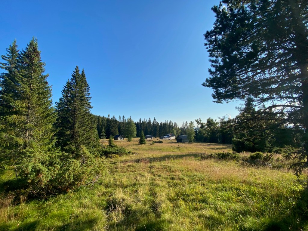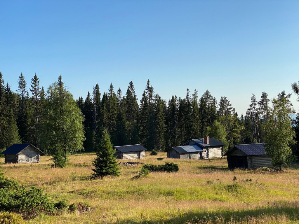 Rätt var det var öppnade det upp sig ett rätt stort fäbodlandskap med ett antal fina gamla timmerhus. Vanligtvis är det mer igenväxt och mindre friytor när jag kommer till gamla mindre fäbodställen. Här var så fint och på vägen dit bredde den stora Lekstjärnen ut sig med slogbod för fiskeintresserade.