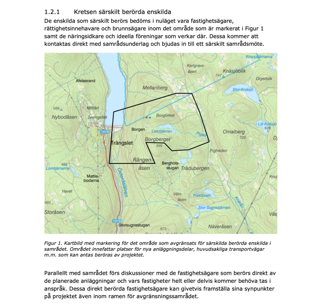 Ytterligare några bilder från förstudien. Först en bild på det berörda området och beskrivning av kretsen särskilt berörda enskilda.