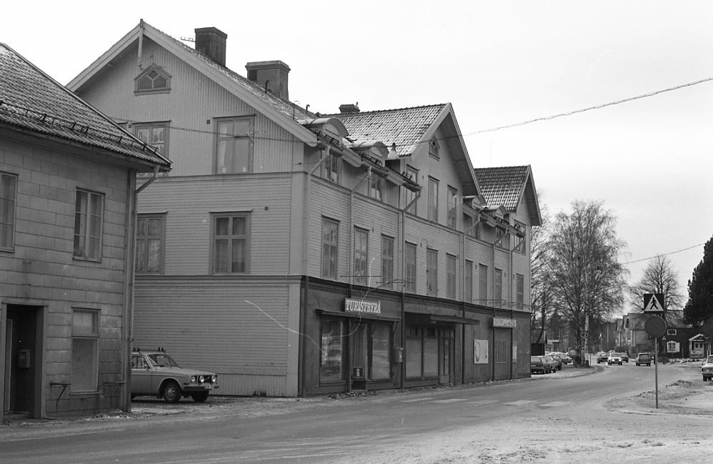 I samma byggnad som busstationen låg den fina Pressbyråkiosken. Där köpte vi förresten lösa Bellman Siesta som vi hade i mungipan när jumpade på stockarna nere vid Saxviken. Brännvinsmagasinet användes på den tiden som personalbostäder åt hotellet. Vår kompis Kent Schillström med fru Traudi bodde där. Fru kanske inte då, men senare. De stadgade sig tidigt. Behövdes nog för att få ordning på Kent. Där på nedre plan hade vi många trevliga tillställningar. På övervåningen bodde då en tysk kille, var namn jag kanske kommer på senare. Bakom det här huset låg Holgers korvkiosk. Godaste grillade med bröd i Mora. Nära kiosken låg ett blått ”bioskåp” där filmerna på Saga och Skandia annonserades ut. Rolf Andersson bytte affischerna några år.