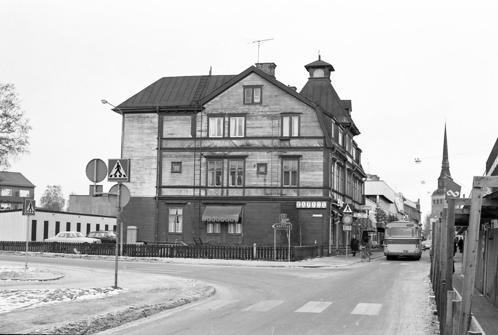 Långt söderut på Kyrkogatan står än idag det här lite annorlunda huset. Idag rödmålat. Kallas Kufverska huset om jag hört rätt. Längre upp på Kyrkogatan från det låga timmerhuset som visades tidigare.