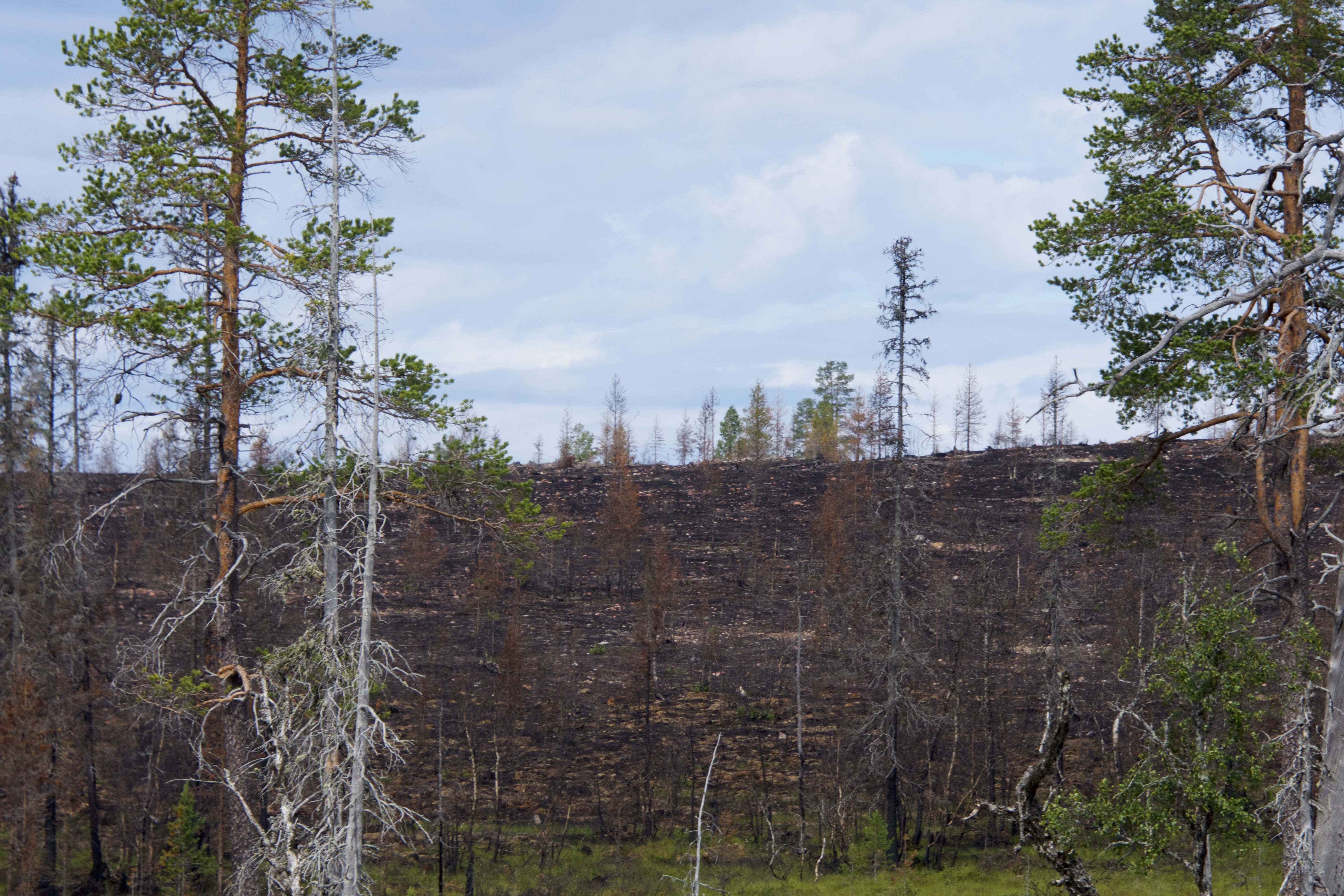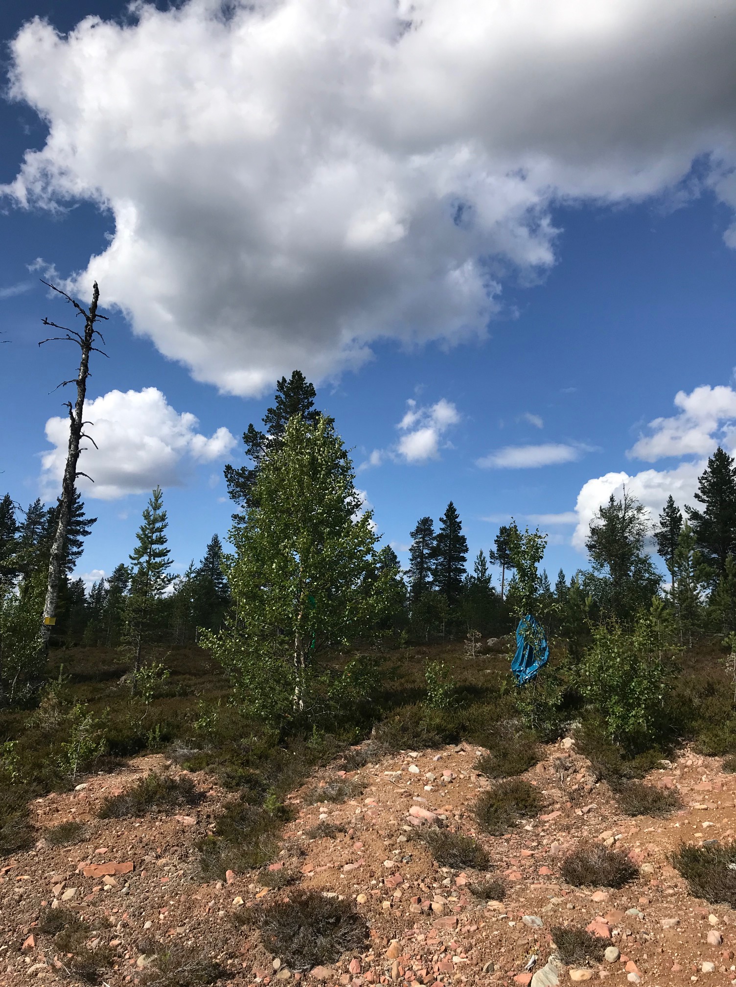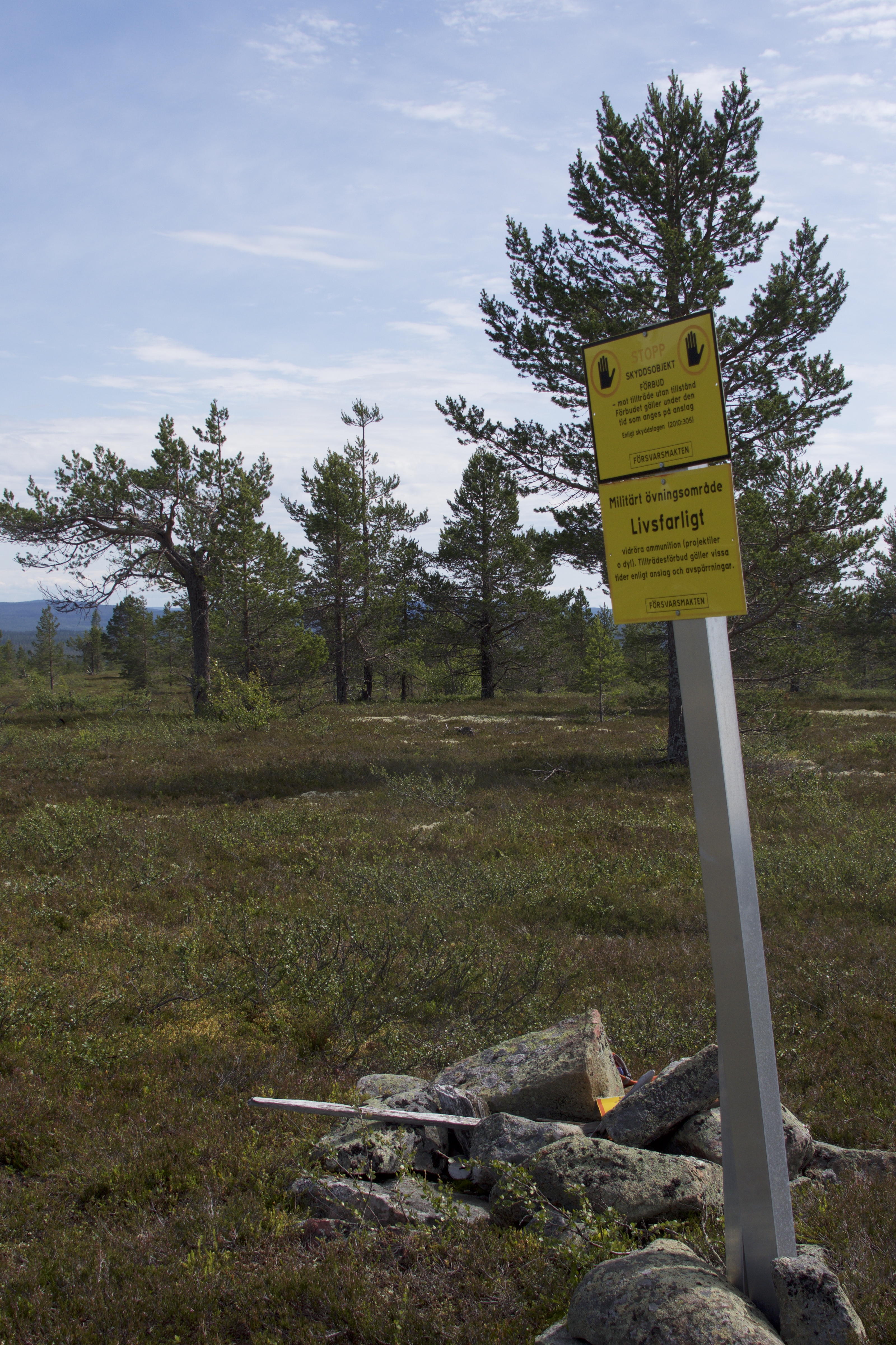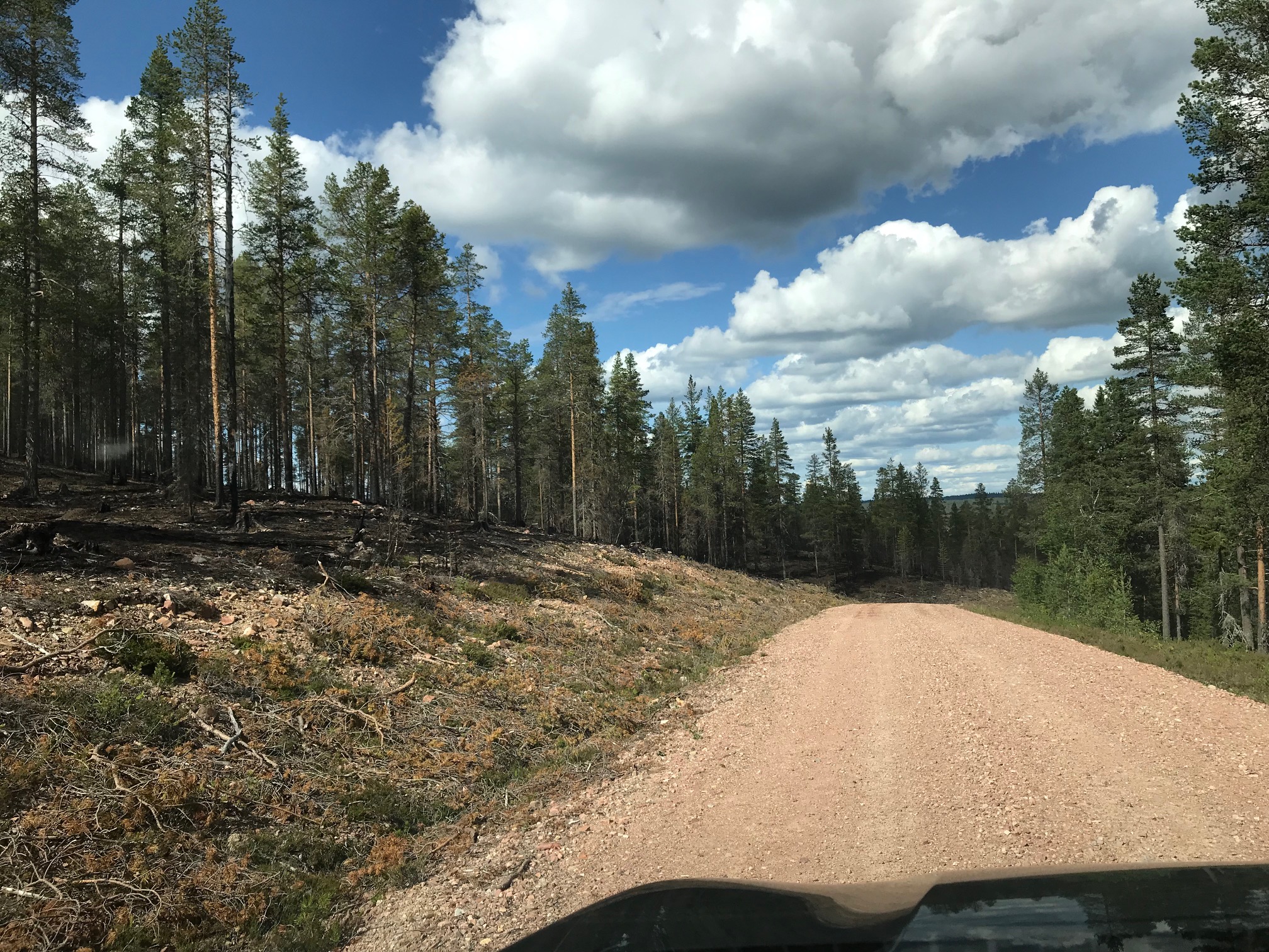 Det är en skaplig bit att åka upp till Norra delarna av skjutfältet från Mora. Jag åkte upp över Trängsletdammen och ner över Mossiberg, Jöllen. 20 mil blev det allt, men fint efter vägen. Parkera vid den blå påsen efter vägen mot Lokavallen sa Anders. Den hade jag tidigare sett vid en cykeltur någon vecka tidigare. Det var bara att parkera och starta turen, spännande i finvädret. Lite läskigt var det att se resultatet av den stora skogsbranden från förra sommaren. Bara några hundratal meter från där jag började gå. Men inga ”färska” brandrester på min tur.