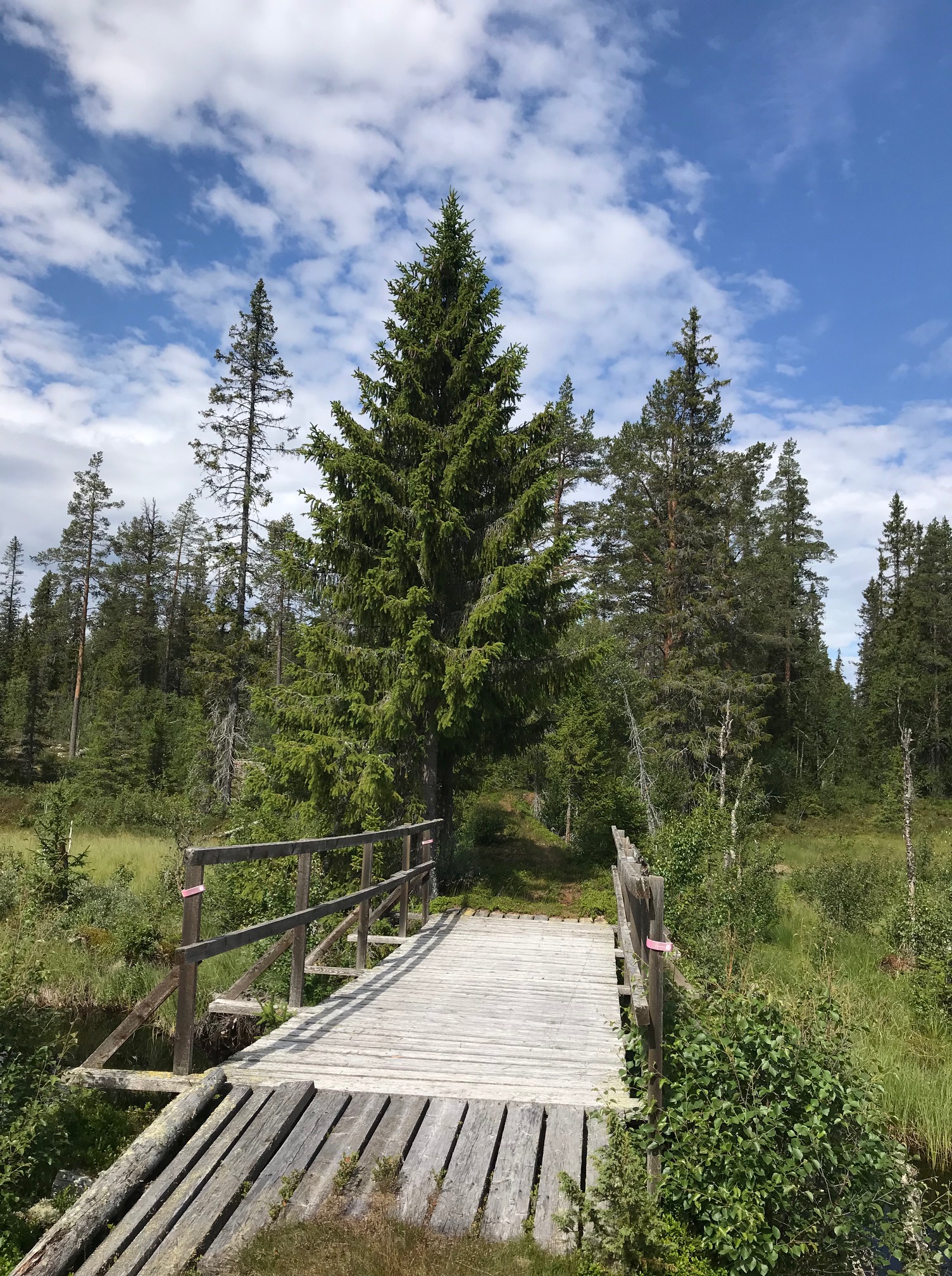Första lilla stoppet fick bli vid bron över Lånån byggd av Lokavallens jaktlag. Tänka sig en flottningsdamm mitt där ute i ingenting. Fin plats där man kunde skönja platsen för flottarkojan.
