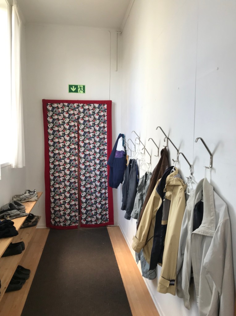 Då tror jag vi lämnar skolan för den här gången. En bild mot korridoren och dörren ut och själva utgången. Förresten glömde jag skriva att vi fick turas om att springa ut och hjälpa Nisse Bergström att bära in matkantiner när han kom med sin taxi. Ett efterlängtat avbrott i lektionen. Sen lade vi ut våra vaxdukar på bänken och intog skollunchen, för hungriga var vi oftast.