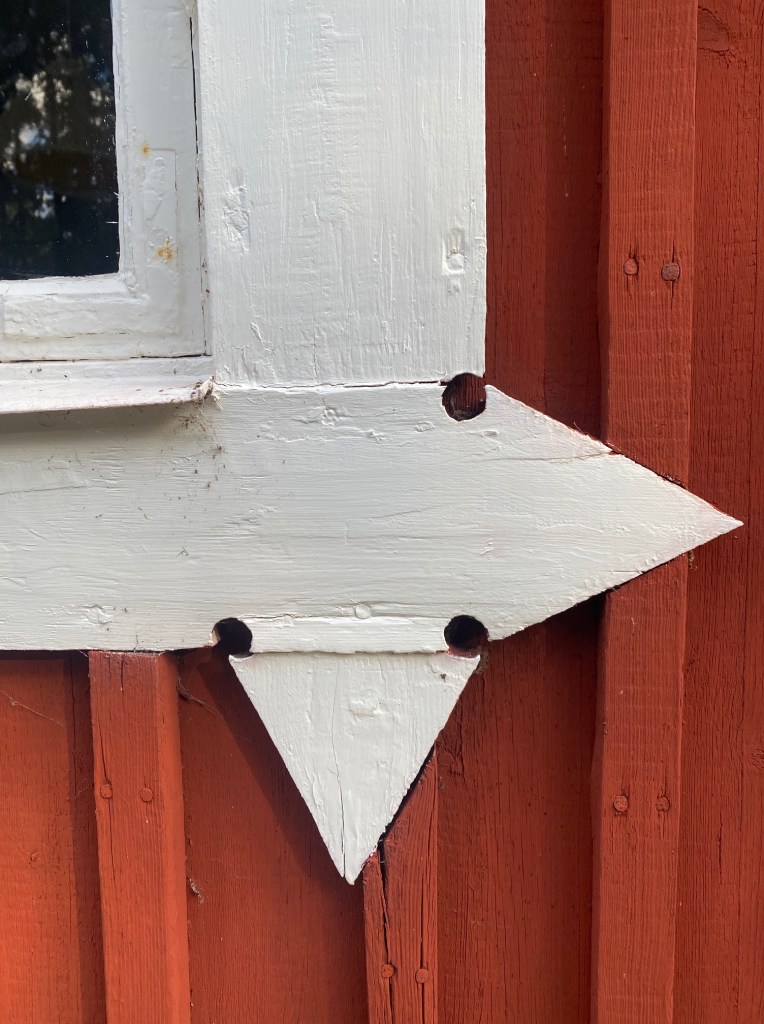 Skyltat med vissa minnesplatser. Här bodde familjen Hallgren, tjärfabriksfamiljen.