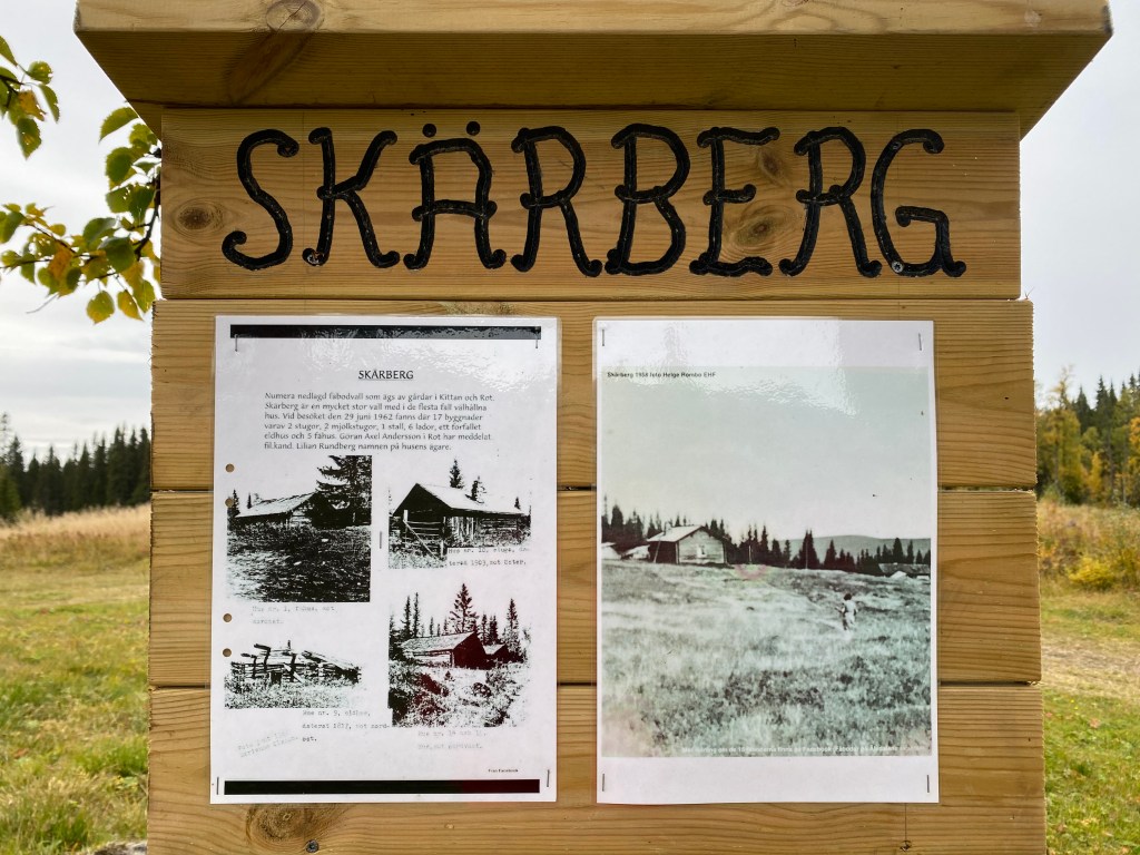 I Skärberg fanns 17 byggnader 1962. På varje av de ”övertagna” fäbodarna på skjutfältet finns fina informationsskyltar som Bosse Tegnér m.fl. sett till att de kommit på plats. Bosse huvudansvarig. Väldigt bra för alla besökare att få en kort information om vad man har framför sig.