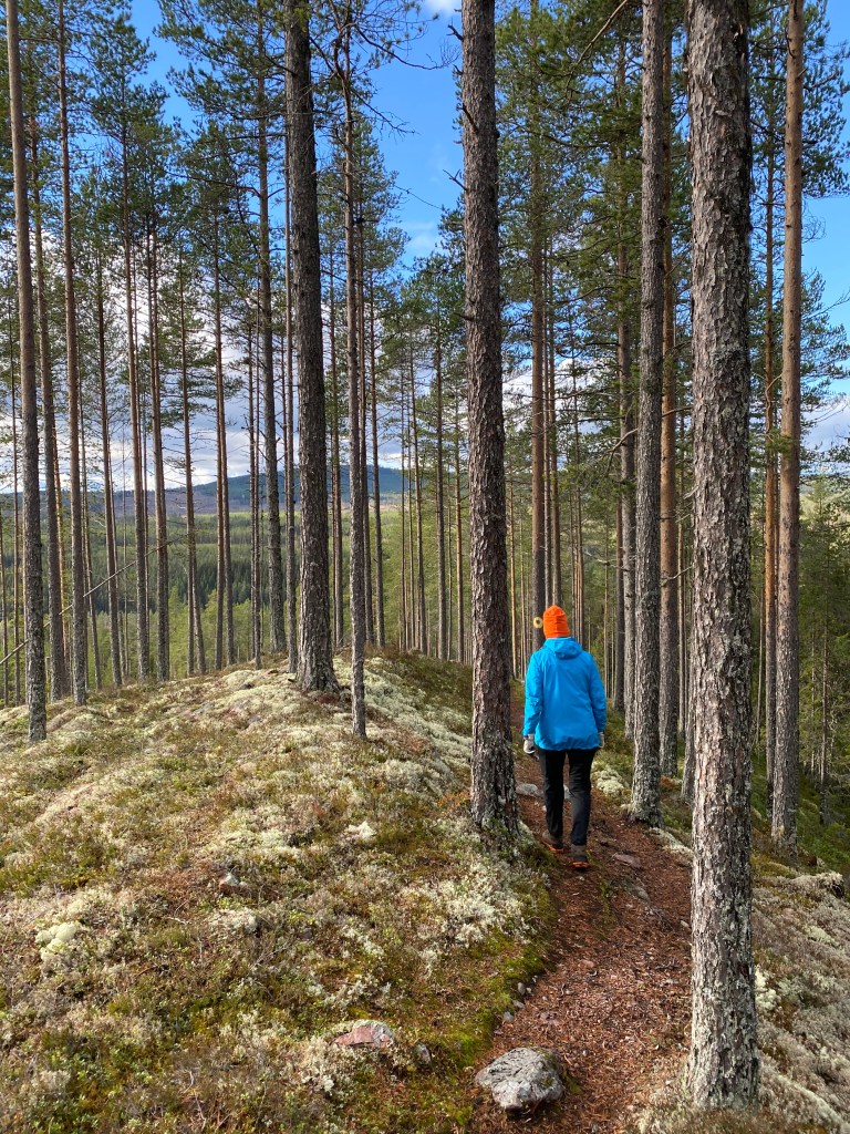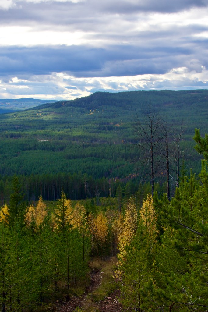 Vi gick neröver med bilen i sikte. Först en stigning över Högsås. Jag skulle gått upp längre på Åsen för att få några bilder ner mot Älvdalen. Utmed leden var utsikten ”förstörd” av uppväxande ungskog.