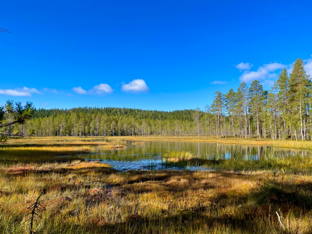 Jag såg en fin tjärn på lite håll, kanske Oxeråstjärnen? En bild blev det i det fina ljuset.
