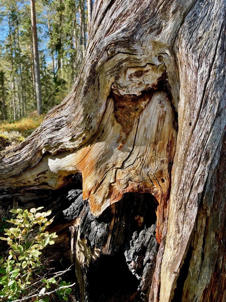 Jag blir lite förtjust i gamla stubbar och andra naturliga konstverk därute. De viskar så fint om det förgångna. Här några exempel.