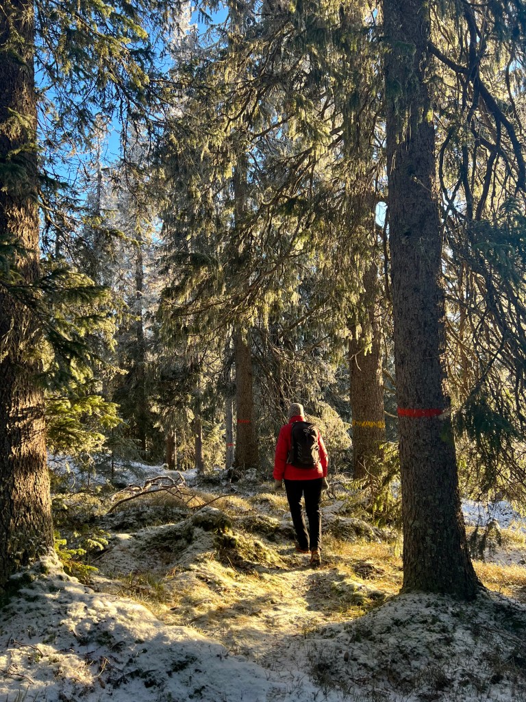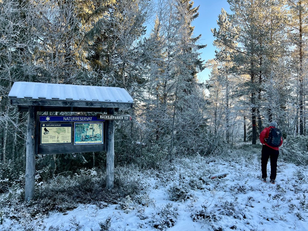 Det är ca 1 km att gå upp till tornet. Inga större krav alltså. Fin gammelskog. Näcksjövarden är ett natureservat som sköts av Länsstyrelsen. Som tur är, tänk om det vore avverkat. Nej, vi är många som är tacksamma för att skog kan skyddas för framtiden.