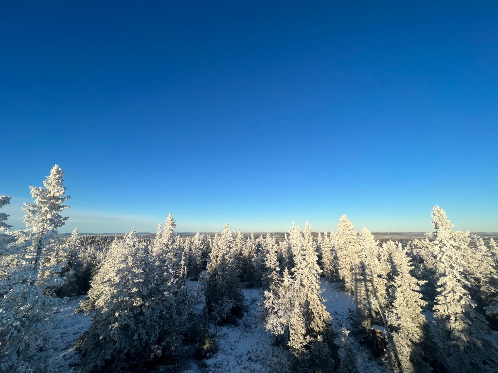 Tornet tornar snart upp sig och däruppe på 722 m.ö.h. ser man långt åt alla håll, 360 som det heter. Det finns en slagbod och toalett däruppe. Leden är nog inte så mycket utnyttjad som skoterleden som kommer från Näcksjöhållet. Det kunde man se i gästboken.