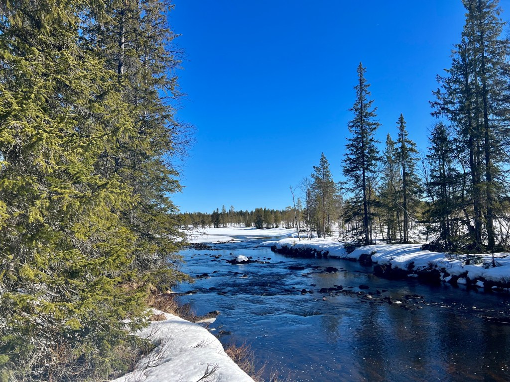 På vägen norrut de 6 km åkte jag intill Olingan som börjat strömma lite. Det fick bli några kort. Skaren höll ju.