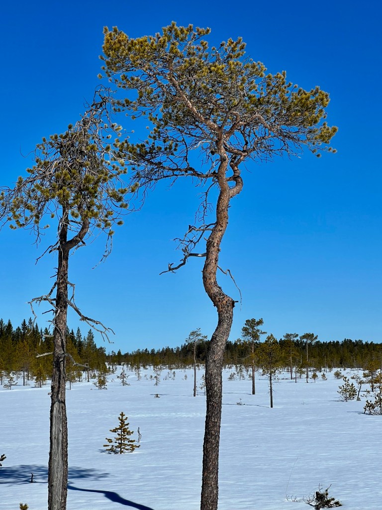Jag åkte så sakta jag kunde mot solen och tittade mig omkring. Såg två riktiga torrakor som säkert stod där på Karl XI:s tid. Ståtliga och fina redan då när kungen och hans följe närmade sig Ulvsjö och mat på Lindbergsgårdens ”gästgiveri”. Träden hade genomgått minst en skogsbrand.