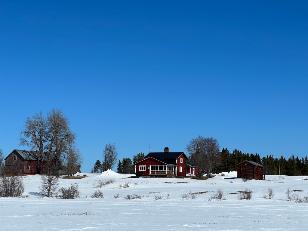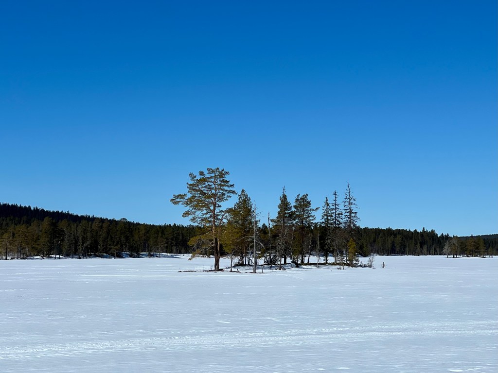 Jag har redovisat en del skidturer från vintern 2021/22. Jag vill inte avsluta skidsäsongen förrän ni fått veta lite om den här speciella turen. Jag hade hört att det rätt ofta finns ett skidspår från Ulvsjö och norrut mot Härjedalen. Ulf Andersson brukar spåra där. Fru Birgitta hade skvallrat att det var nyspårat igen. Det finns stort skidintresse i familjen och i bekantskapen så det passar bra att göra ett skidspår där. Än bättre blir det naturligtvis då de har en stuga där i Ulvsjö. Birgitta är dotter till Ulla-Britt Lindberg som bodde i granngården. Ulla-Britt var jag ”kompis” med och jag parkerade bilen på hennes gård.