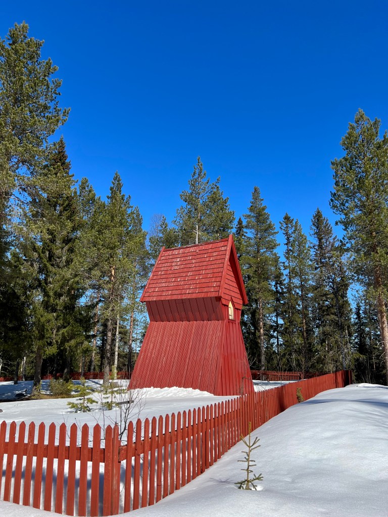 Ett snack med Birgitta Andersson som kommit från jobbet. Vidare mot Mora efter ett stopp vid skogskyrkogården med sin klockstapel.