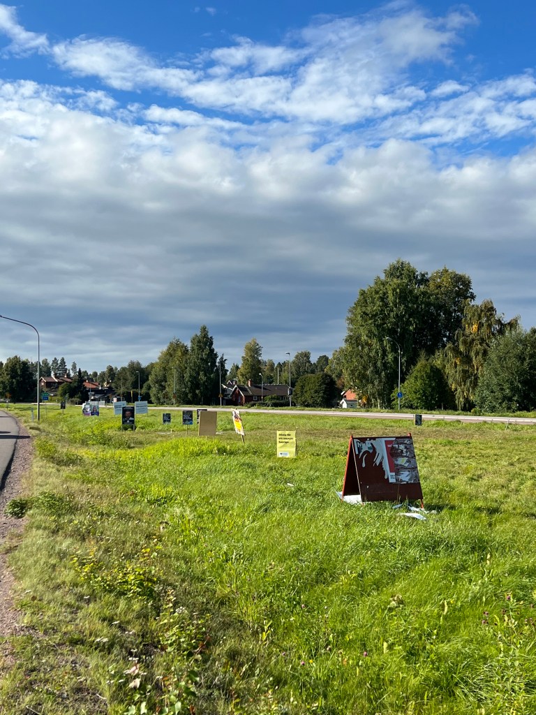 Valaffischer hoppade man över för några val sedan. Nu är dom i alla fall åter, kanske även inför förra valet, tror det. Utmed Malungsvägen räknade jag en dag ca 25 affischer. Många med väldigt liten text och svåra att läsa. Förresten det är väl bilkörning man ska koncentrera sig på vid utfarten av Mora. Tror man verkligen att detta affischerande påverkar valutgången. Eller törs man inte låta bli om någon börjar? Ingen stor fråga, men ändå. Positiva reaktioner ger de inte. Tyvärr även sabotage förekommer, förstörelse och borttagning av skyltar. Kanske ett gemensamt beslut som förr, att skippa detta vore klokt.