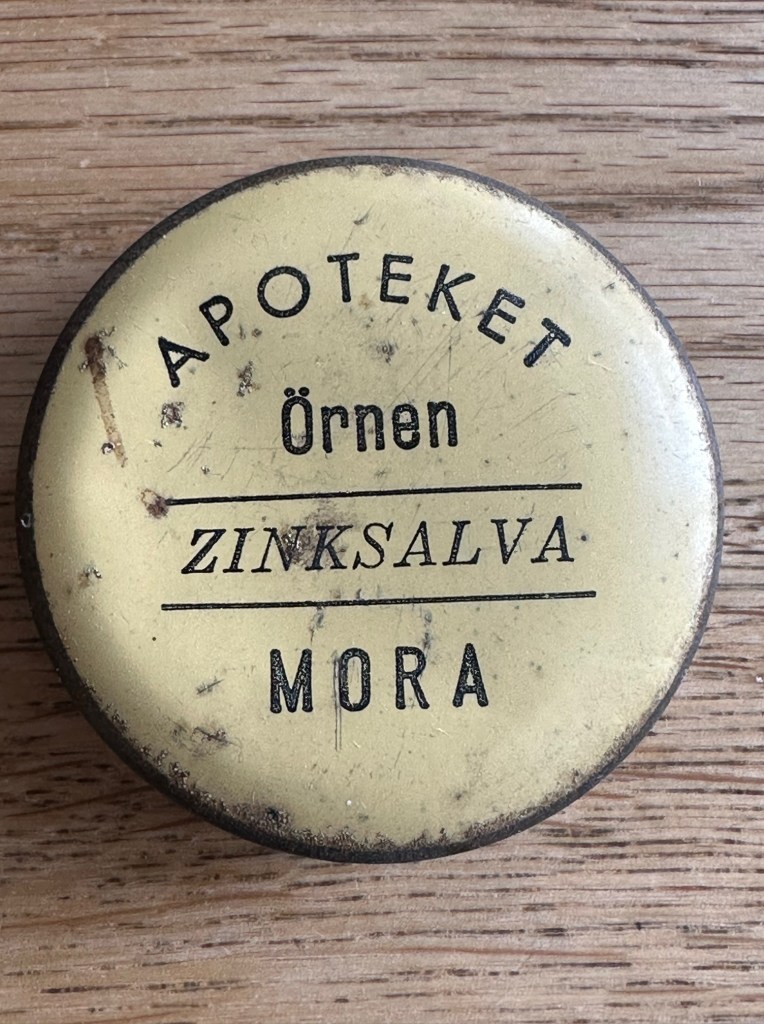 Förresten, först en nostalgiburk som Anna förbrukat. Från apoteket Örnen i Mora.