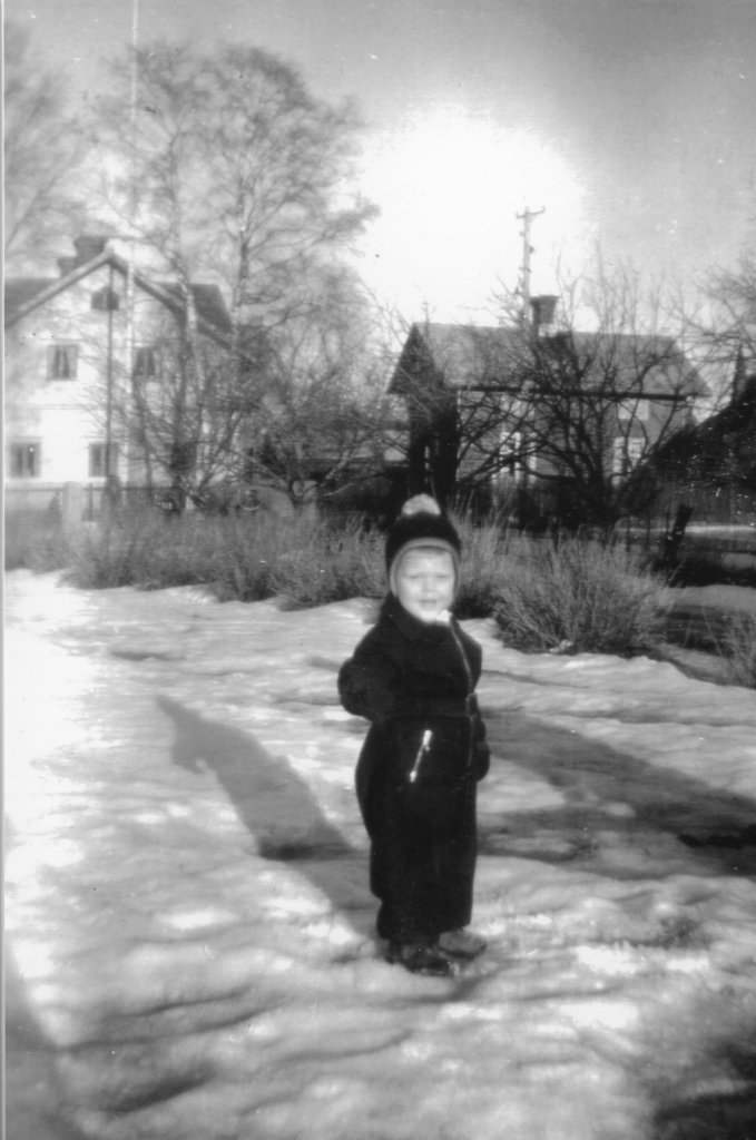 Vi ser Risto stående på barnhemmets gård med den s.k. Fridhemsbacken bakom sig. De två husen är rivna men jag kände igen dem.