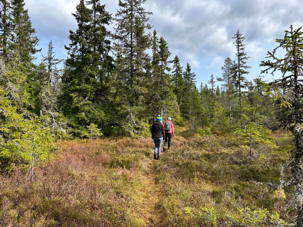 Vi åkte de 5 milen upp till Koppången och trodde på det fina vädret som TV och diverse väderappar lovat. Det uteblev. Gjorde inget. Det blev så bra ändå. Vi ville allt gå en lite längre tur så vi valde att besöka Tunturi och Blomtäkt. Det visade sig bli 7,3 km. Alldeles lagom.