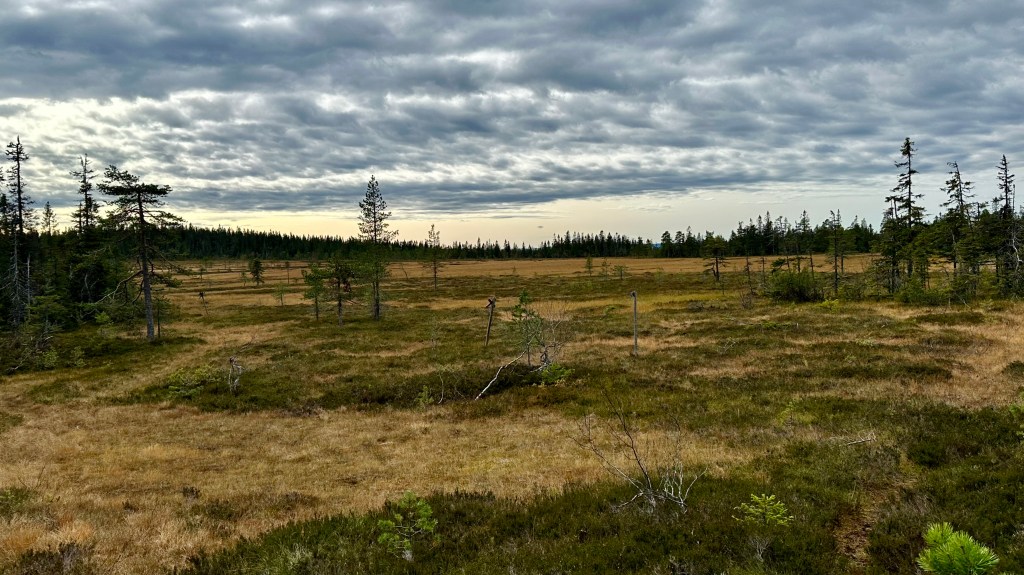 Hursomhelst så är det nu ordnat så att det går att vandra på märkta leder där i myrområdena på hög höjd, upp mot 600 m.ö.h.