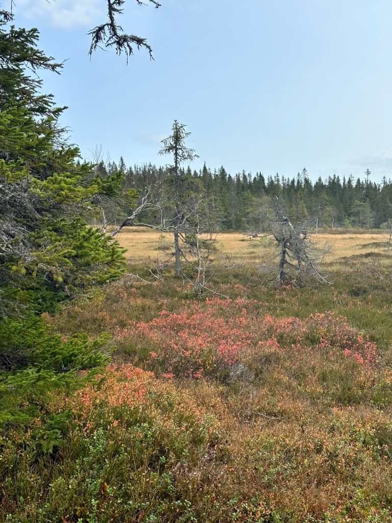 Väldigt fint parti mot Blomtäkt i myrkanten och delvis ute på myrarna.