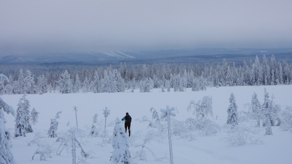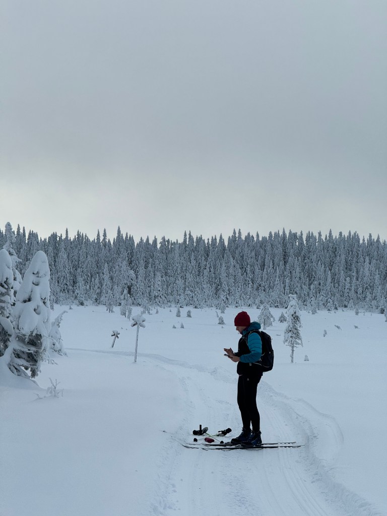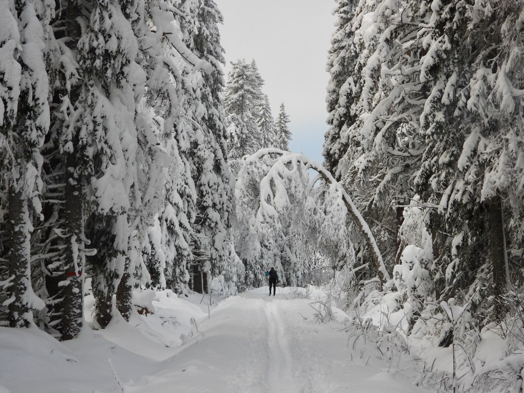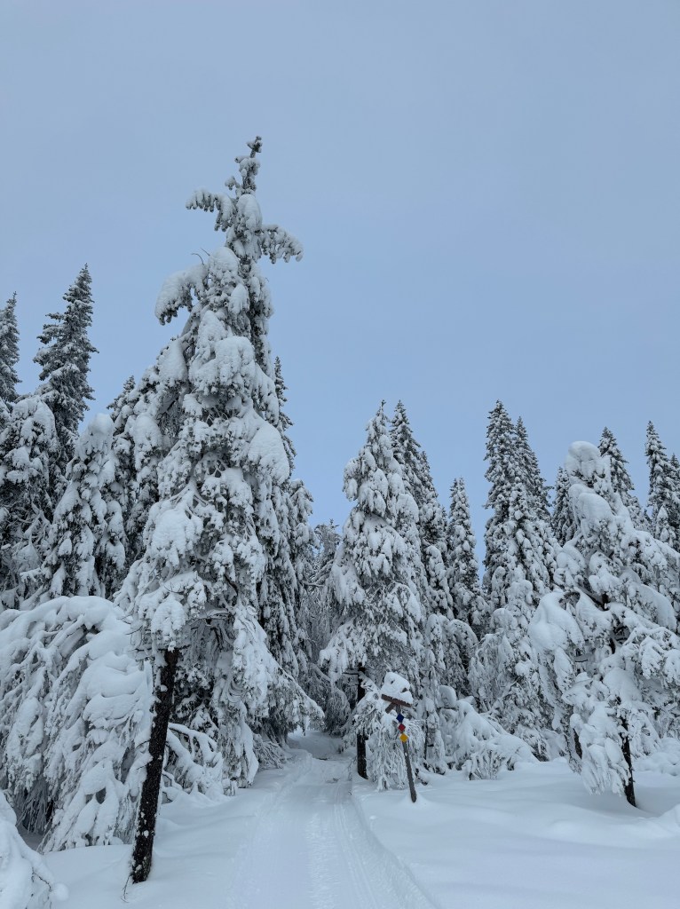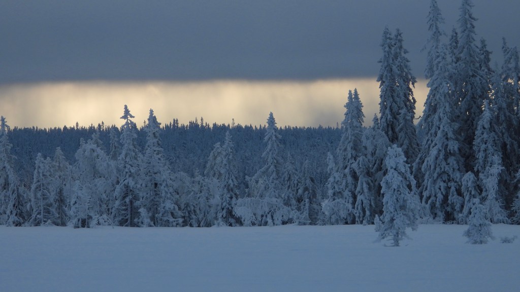 Det är inte så vanligt att vi åker upp och tar en skidtur på Koppången i november. Oftast blir det på vårvintern, men under senare år har vi dragit oss upp dit även ”mitt i vintern”. Härligt med de snötyngda träden och den totala tystnaden. Jag så några bilder från en känd hundspannsförare och tänkte, det där ser väl fint ut. Några spår hade vi, Christina och jag, inte räknat med. Men det var ju fixat för hundspannen och det brukar vara gott nog med turskidorna.