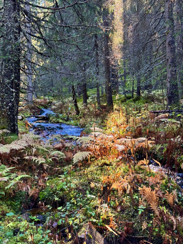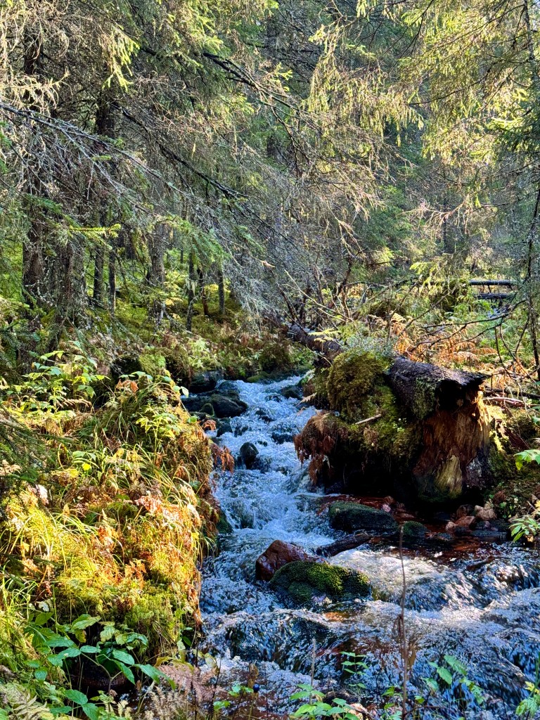 Vi fick ta oss över bäcken några gånger och vi blev inte blöta. Det var väl den dryg km att knalla, men det går inte så fort. Man måste njuta och fota.