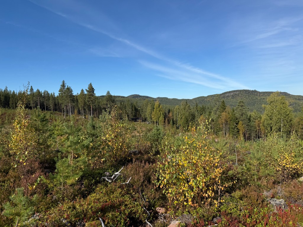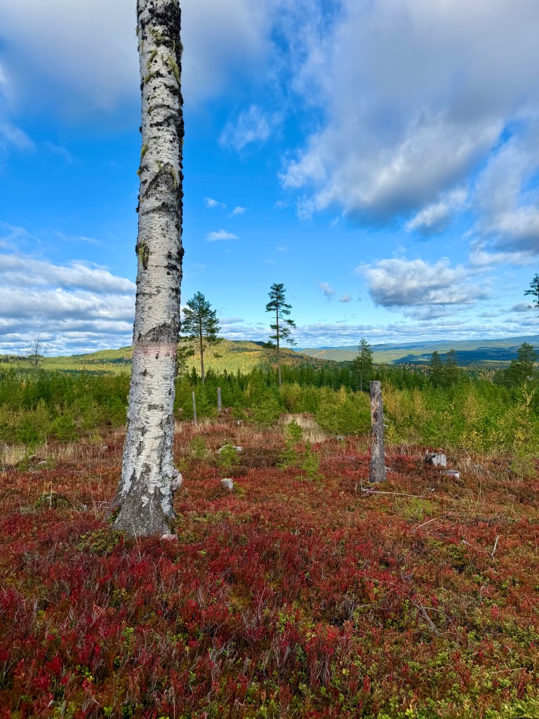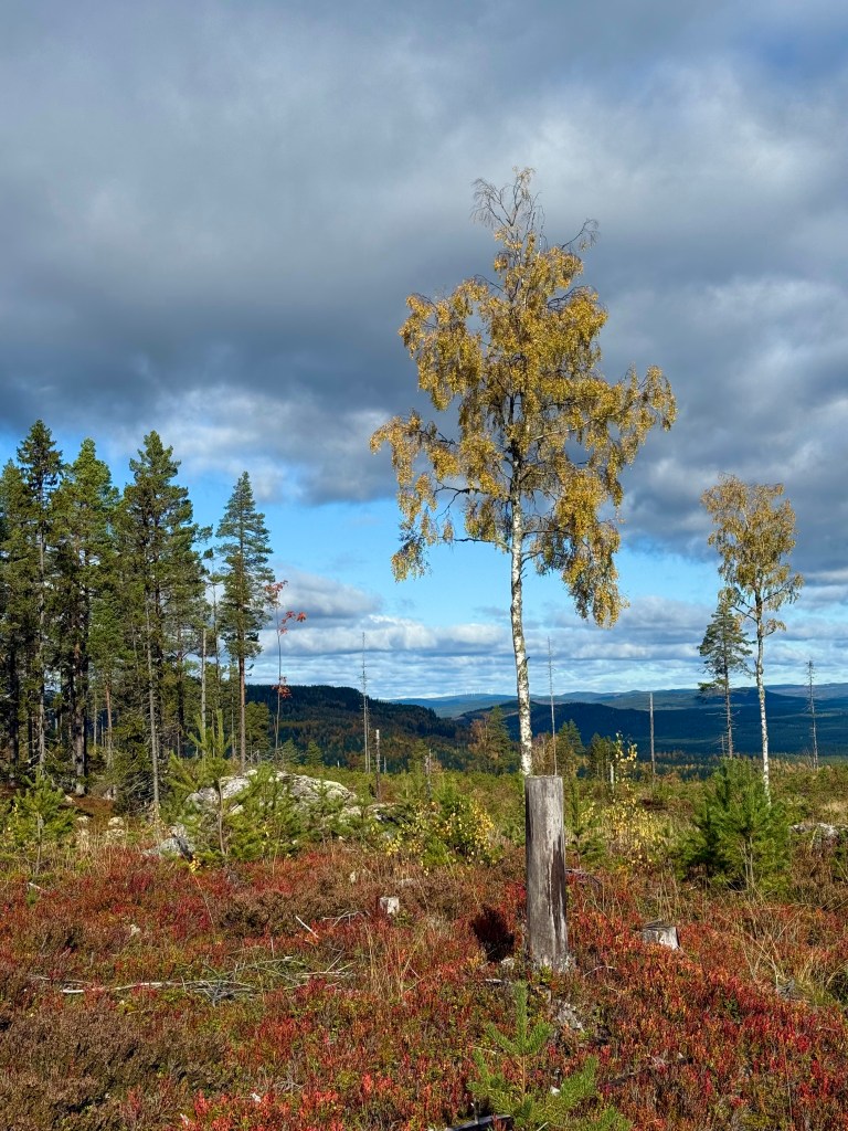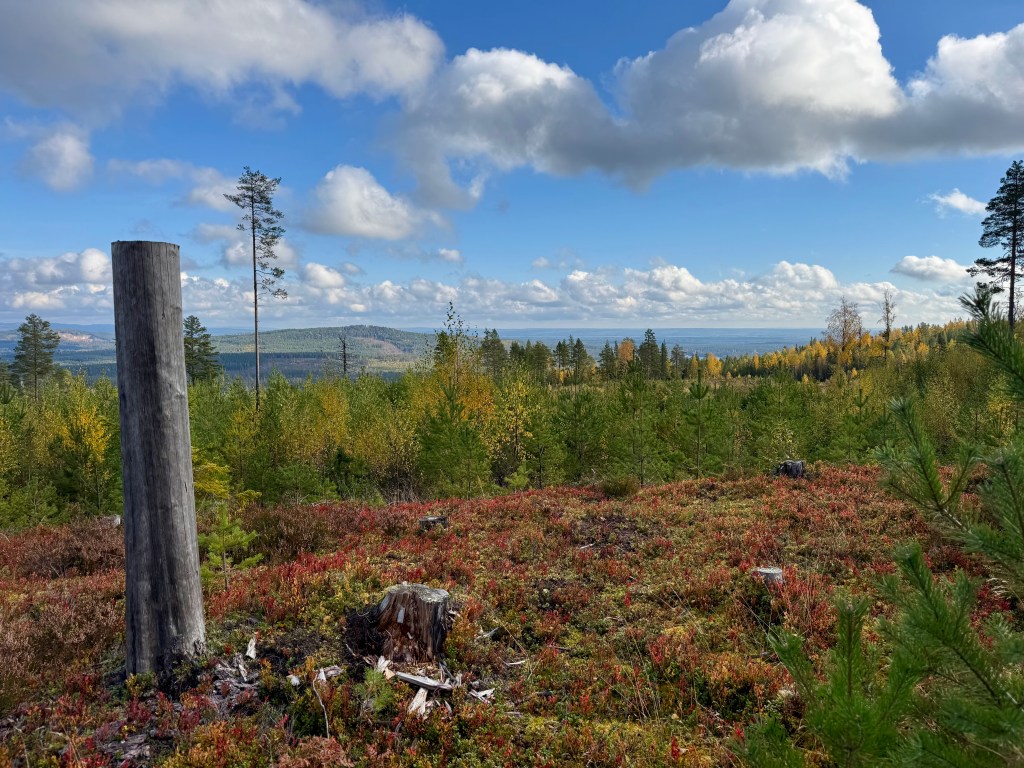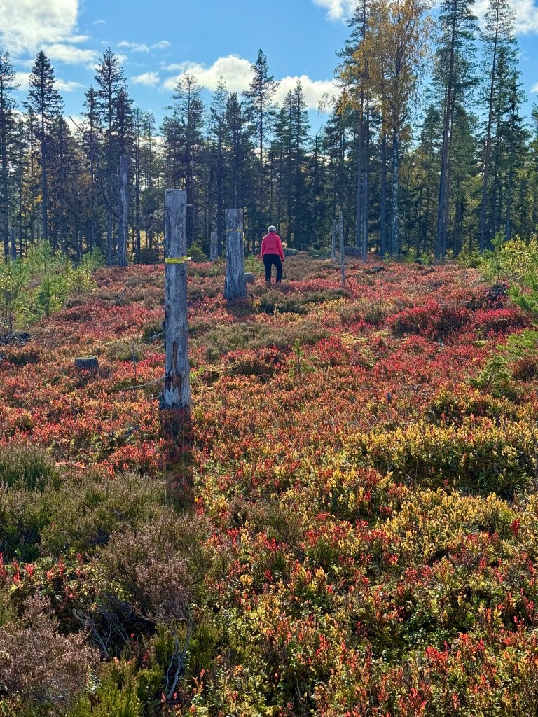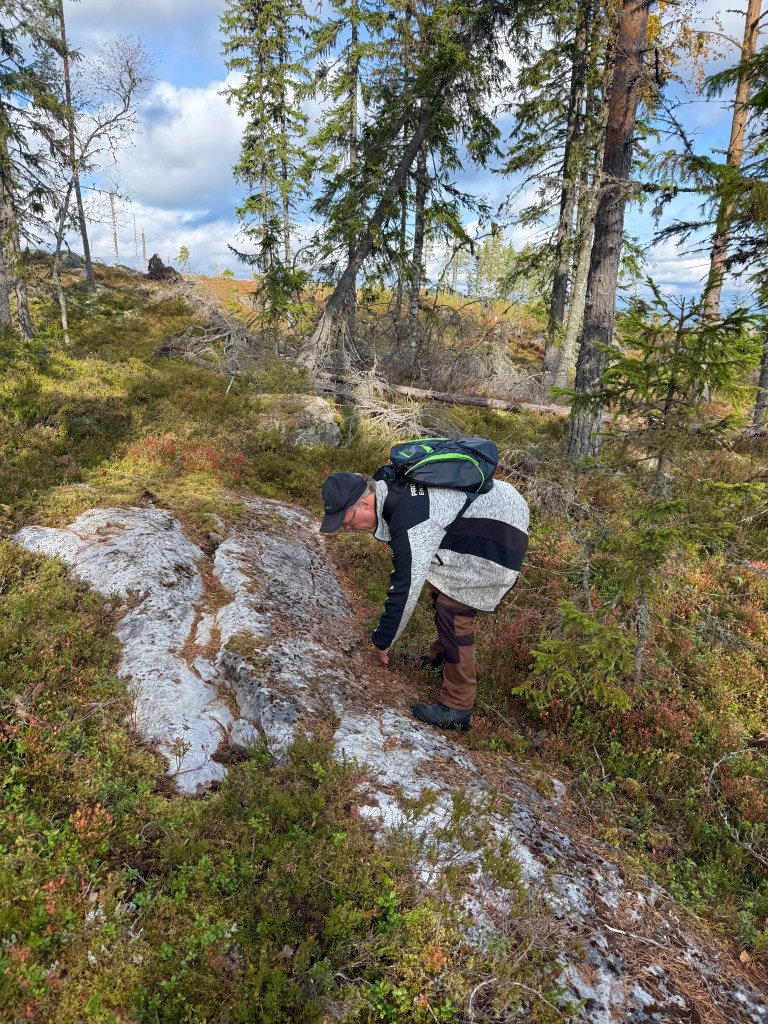 Den 3 oktober 2025 träffades jag och Clas-Göran uppe i Myckelberg. Vår ambition var att märka upp den gamla klövjestigen. Då skulle han även få se stenen. Det var svårt att riktigt se var stigen kom ner i fäbodstället och jag hade känt mig osäker om jag gått rätt tidigare. Vi såg oss omkring lite men bestämde oss för att gå upp och sedan märka stigen när vi gick neröver. För hitta upp gjorde jag bara vi kom ut på hygget. Vi hade en fin dag så bilder blev det naturligtvis.