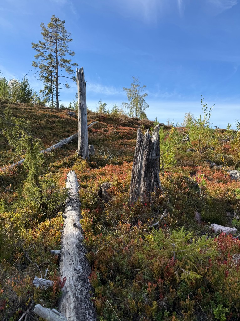 Vi gick omkring lite i den lite tyngre markberedda terrängen och plötsligt såg vi rätt många högstubbar bort mot skogskanten. Jag kollade appen Min karta och stubbarna stod inte utmed skiftesgränsen. Alltså var det märkning av stigens fortsättning. En stig hade gått till N Hemulberg från Myckelberg och kanske vidare, det vet vi. Sen har en gått till N Garberg via Risåsen. Det är Siljansleden idag. Men den går inte här vid ristningshällen. Men kanske det funnits en stig även den här vägen. Måste undersökas. Några fler bilder från Christinas och min tur.