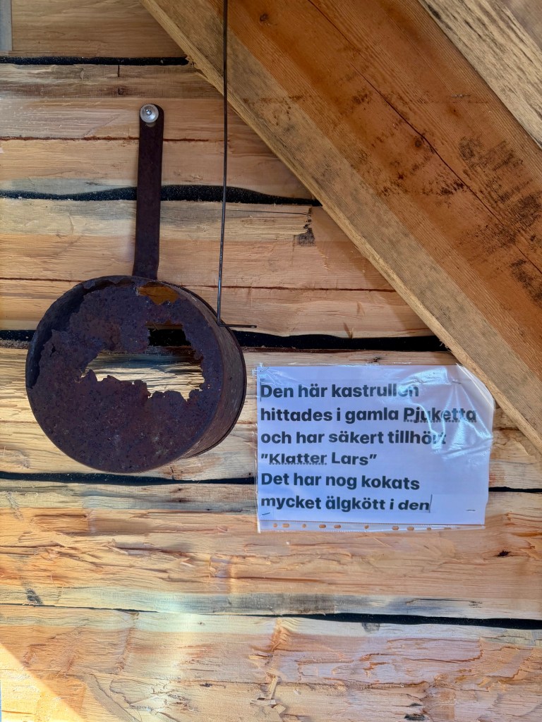 Man möts av en informationsskylt på tallen. Bosse Tegner kan nog vara ”skyldig” till den, liksom till en mängd andra vid de nedlagda fäbodarna på skjutfältet.