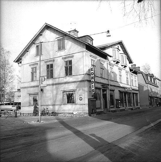 Vi tar oss nu österut och kommer ut på Vasagatan. Där når vi Hakonhuset på höger sida och därefter ett hyreshus i tegel. Där på kortsidan låg en gång Rasta Café/Konditori. Elsie Hammarbäck drev caféet mellan åren 1964-1969. Rasta öppnades en gång av Cleasson, Helmers ägare, och det var en liten ”filial” till konditoriet på Kyrkogatan. Efter Rasta kom en djuraffär och numera frisersalong.