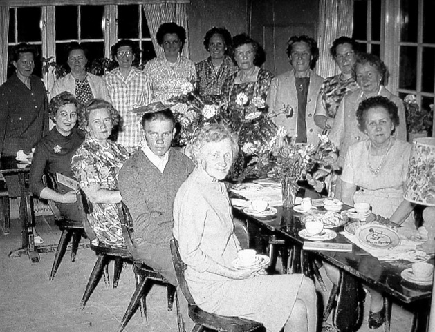 Gerda Kväll i luckan på Pressbyråkiosken.Här firas Gerda Källa pensionsavgång. Gerda till höger. Hennes syster mittemot. Bredvid henne springschasen Bengt Andersson från Vika. Han jobbade där i många ”herrans” år. Kanske hela sitt yrkesliv. Bredvid Bengt ser vi Astrid och Britta Klinglund. När Bengt hade semester plockades andra grabbar in. Några av dem var Hans Forsström, Kjell Erik ”Tjalle” Juhlin och jag.