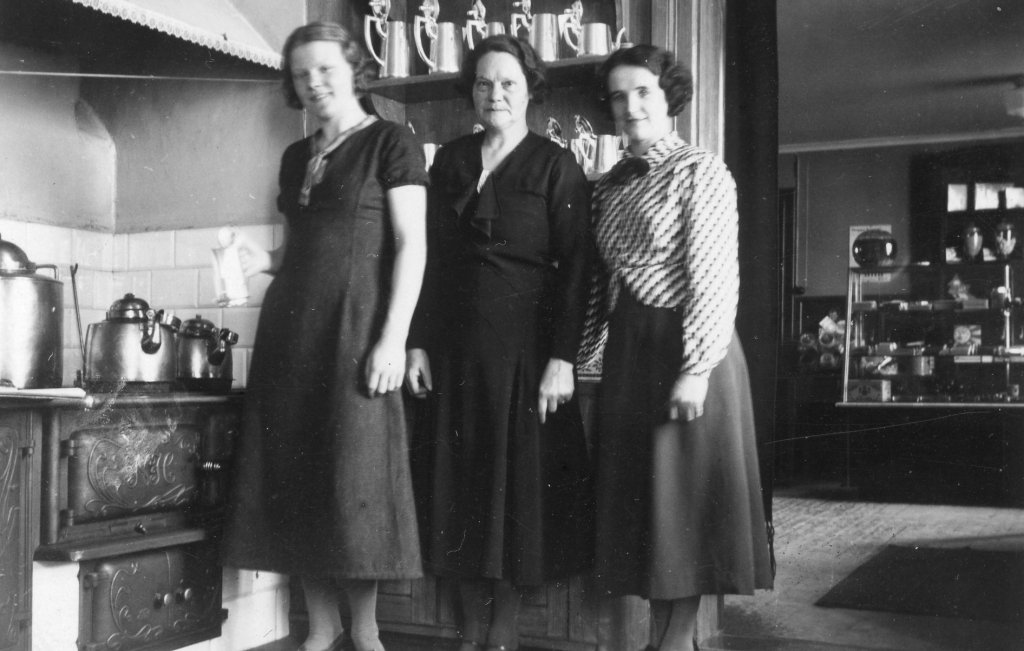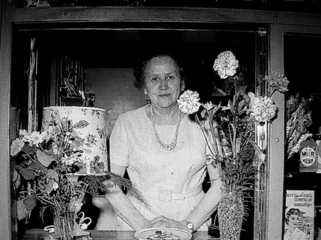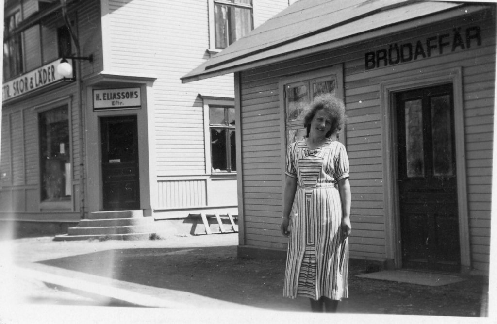Mor Ebba till höger på Mora turistbyrå, gissar 50-tal.