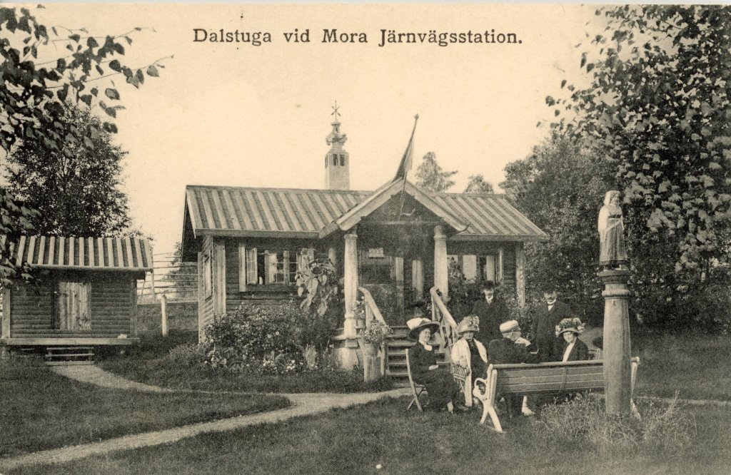 Vi ser på de första bilderna den s.k. Morastugan/Dalastugan som finns på många vykort. Den var tidigt på plats när järnvägen kom till Mora.