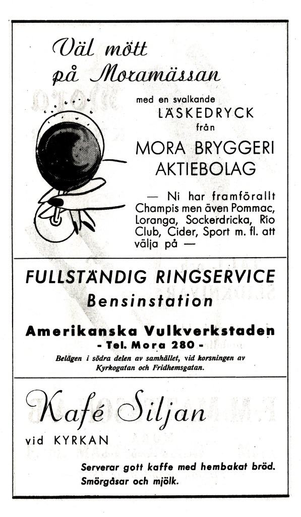 För övrigt så hade jag mitt första springschasjobb där. Körde ut tidningar till Moras affärer och kiosker. Före moppeåldern, så det blev att trampa flakcykel.