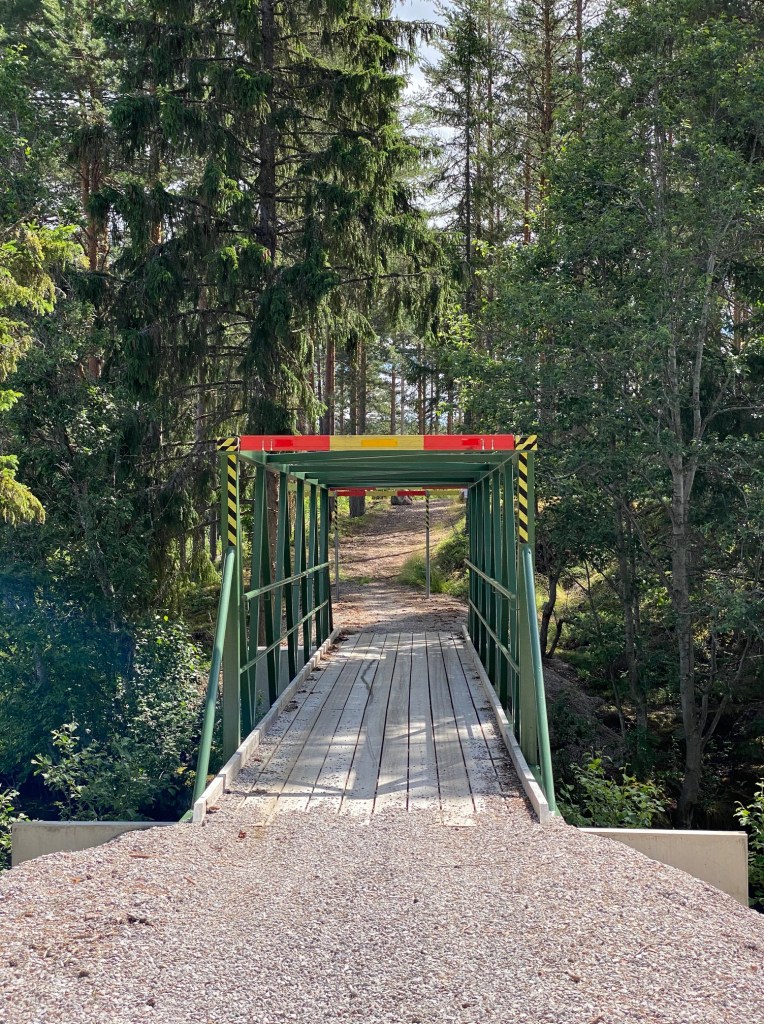Över de fina våtmarkerna och kanalen ytterligare en bro över till andra sidan intill båtplatserna i kanalen vid Kråkberg, ”bakom veterinärerna”. Ännu en tyst fin plats med närliggande hus saboteras för all framtid med anslutning till riksväg 70. Ny rondell.