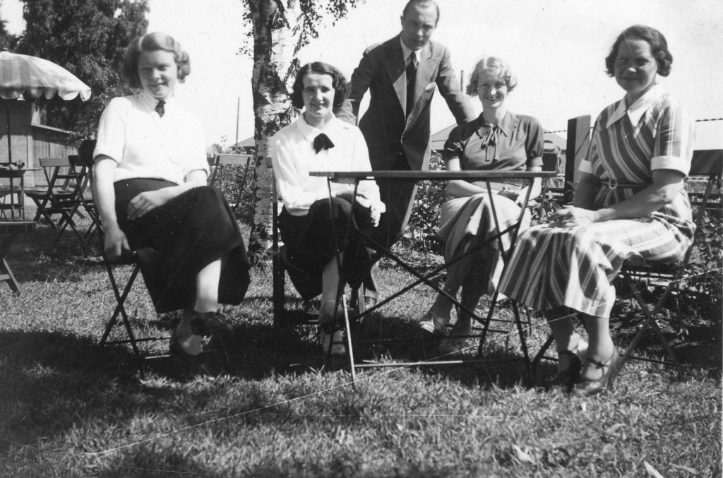 Här en bild från 1944 med soffor, planteringar och träd.