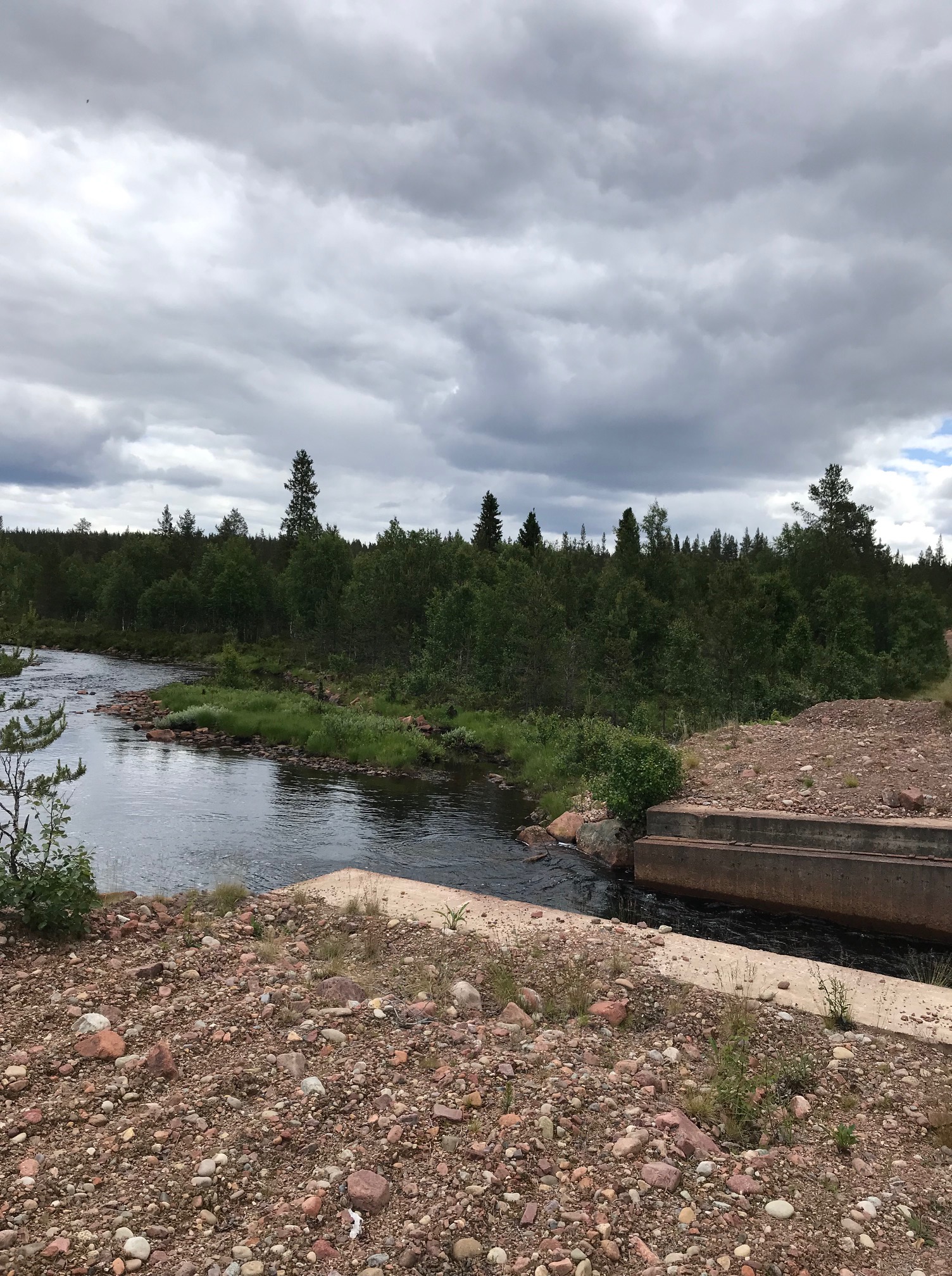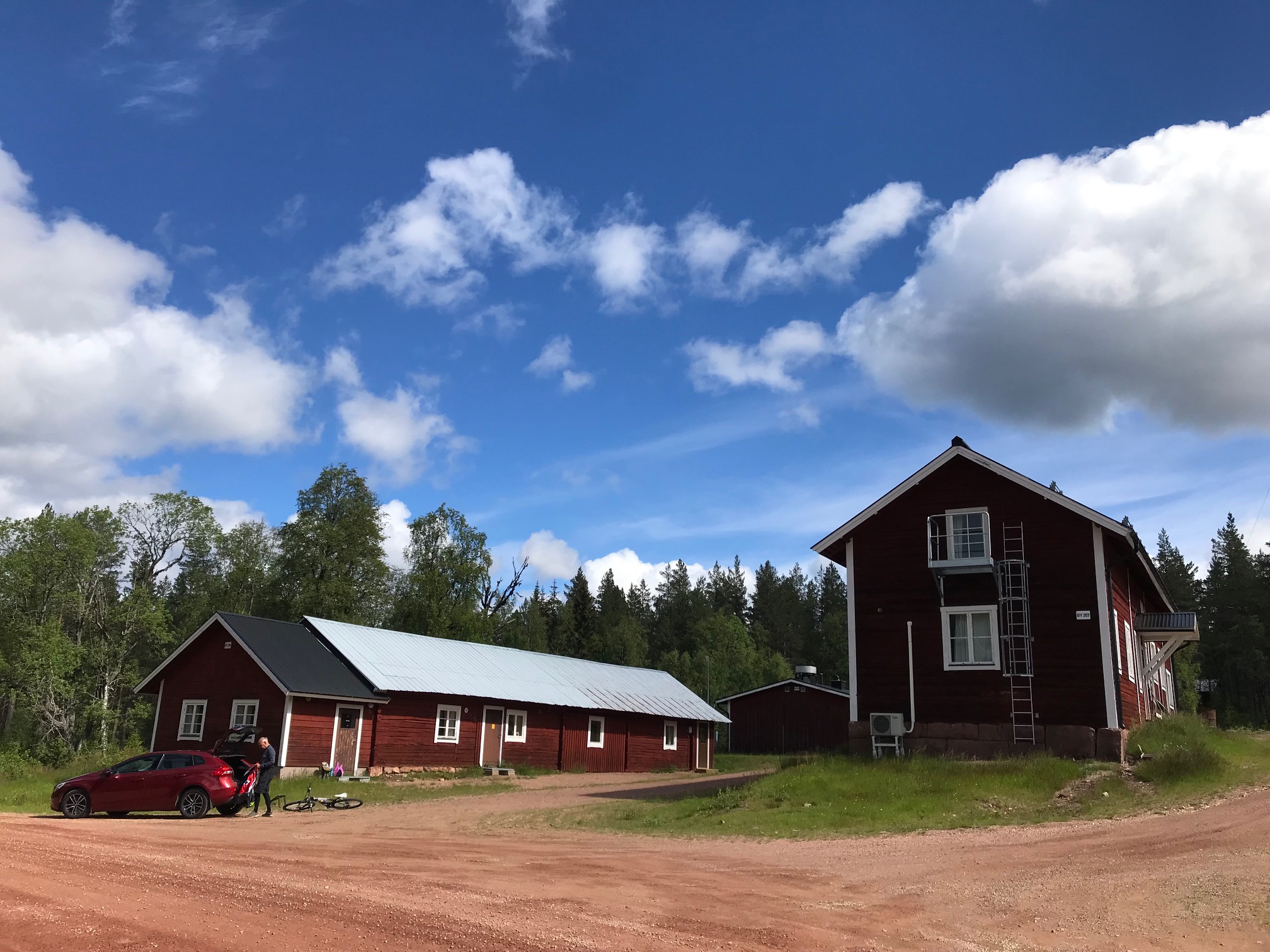 Full fart hemåt utmed Rotälven, så fint. Men drygt upp till Mossiberg, riktig ”mota”. På hemvägen skulle vi kolla in Navardalen, men där var det abonnerat och stängt för övriga besökare. Torvald får fika där en annan gång, eller bo över, som vi gjorde förra sommaren. Natten före den stora skogsbranden. En bild blev det i alla fall, men det hade mulnat på ordentligt.