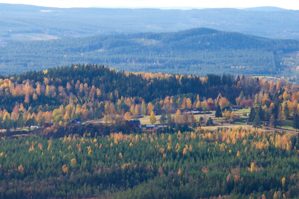 Vi avslutar med ett foto från Lokagnupen ner mot kyrkbyn, vi känner oss så nöjda efter en dag i några Älvdalsfäbodar.