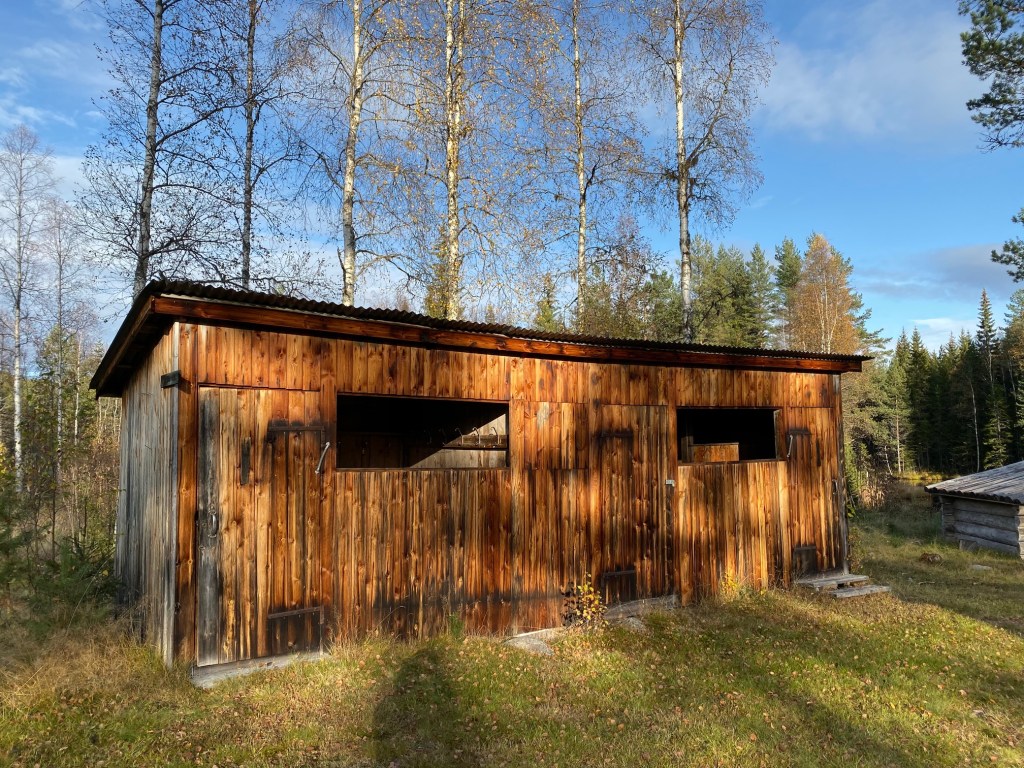 Lite längre upp står ju en liten jaktstuga som har en spännande historia. Den är i familjen Barkes ägo numera. En gång stod den vid Mora järnvägsstation. Sen har den flyttats norröver. Tror den stod i Hökberg ett tag. Här några bilder från förr: