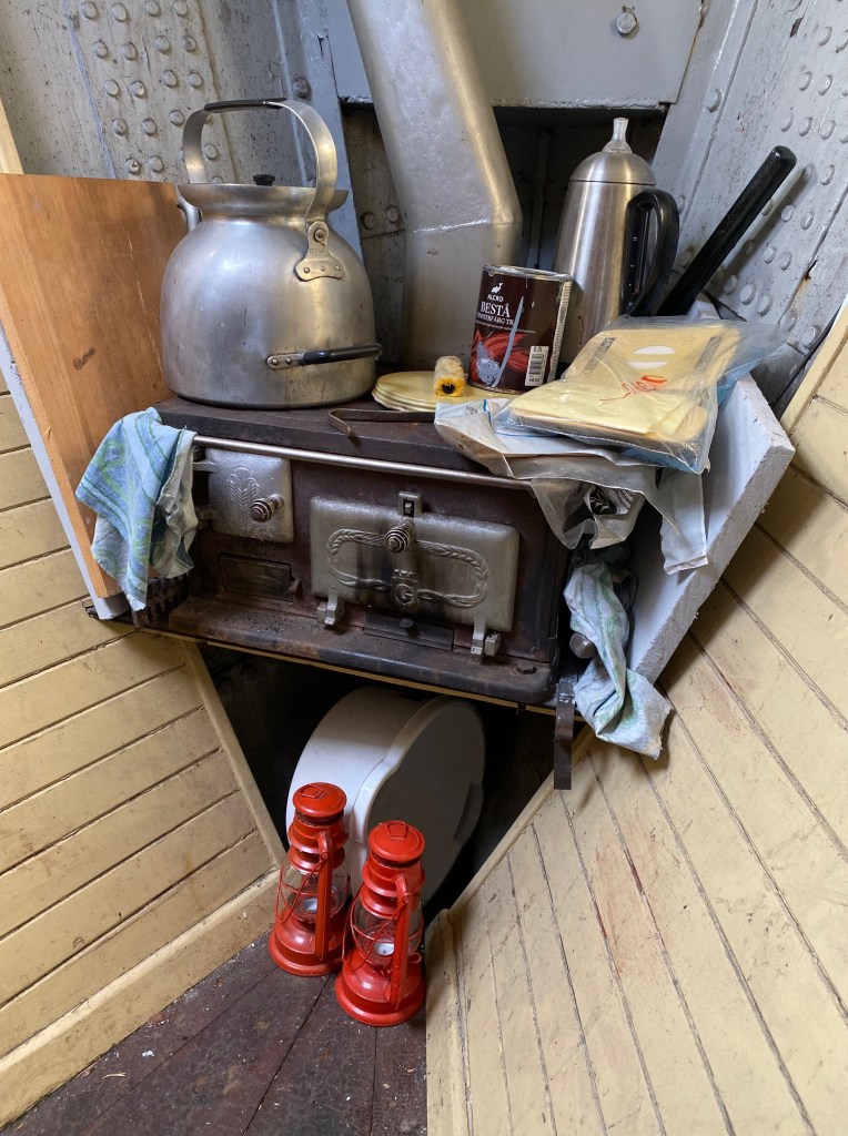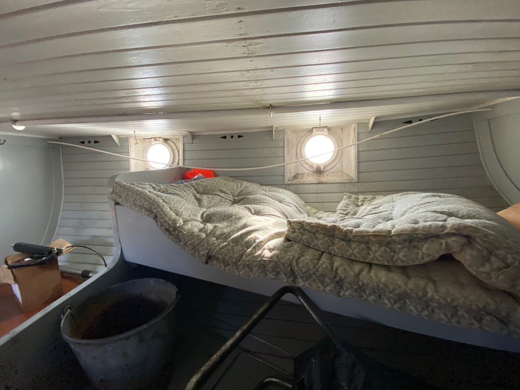 Vi fick även se utrymmena under däck, sovplatser och annat, ”kockens” utrymme m.m.