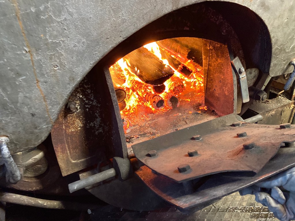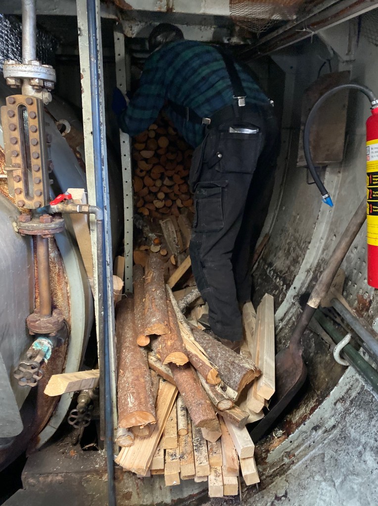 Smörjningen är viktig på en sådan här maskin och det var fascinerande att se hur det så väl fungerade. Vedlagret räcket mer än väl för dagens korta tur. Varm och skönt var det där nere.
