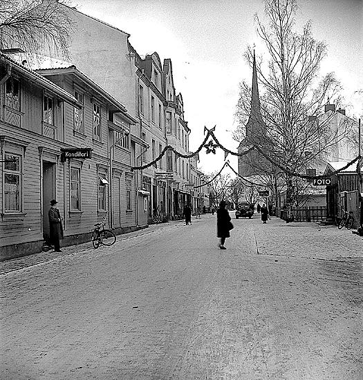 Ytterligare en bild på Vasagatan, bort mot Röda Stugan. Zorngårdens pinnstaket till höger. Kommer inte ihåg namnet på den fina träkåken till vänster. Det låg i princip mittemot Zornmuseet. Asfalt där idag.