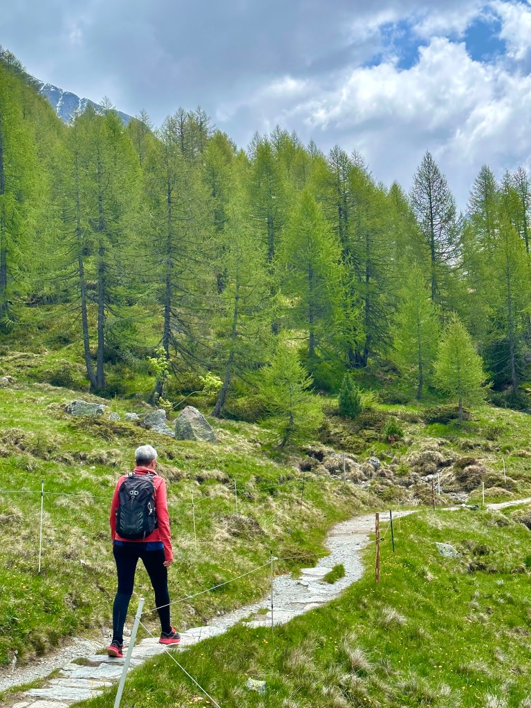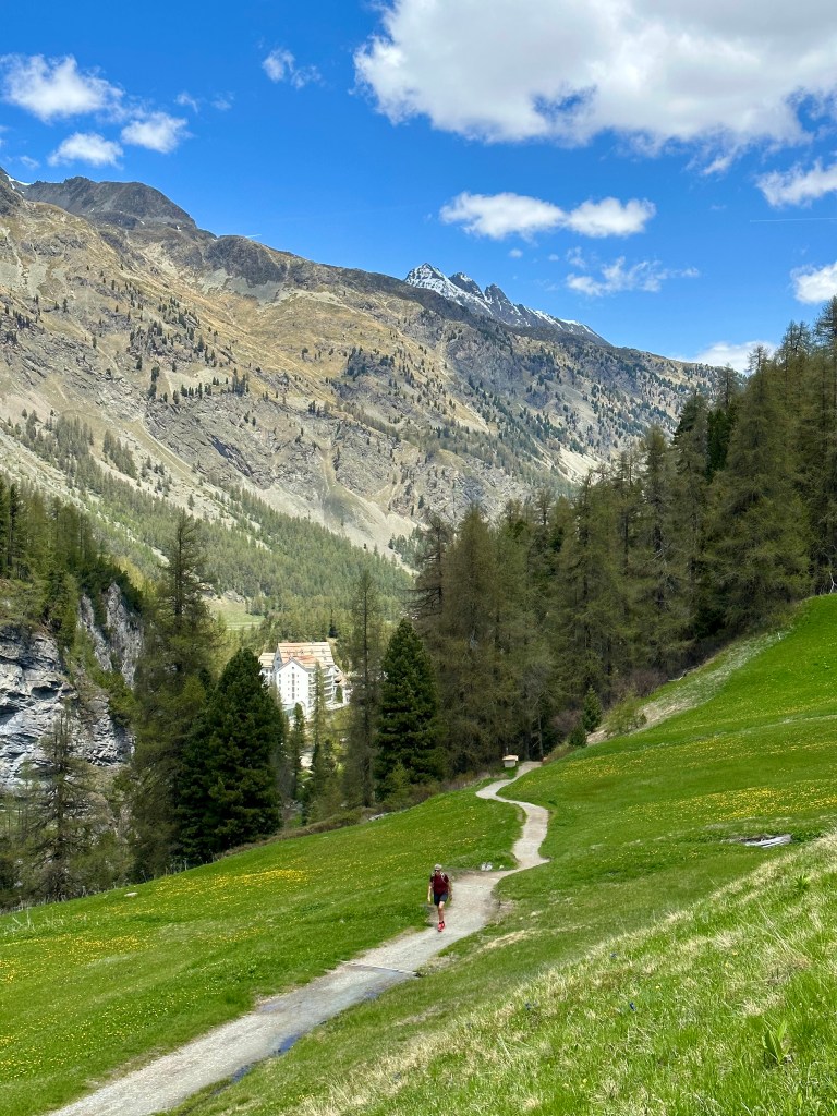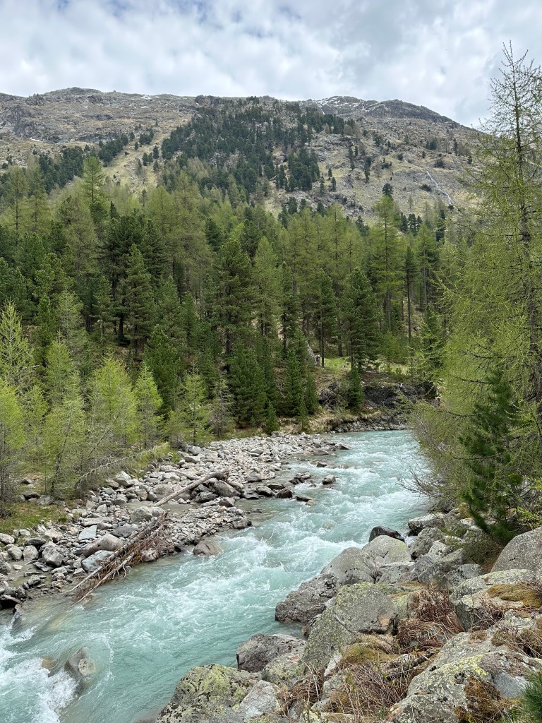 Första dagens tur på G.Vi gick en bit in i Val Fex.Det finns lite turer att välja på.Val Fex, nära hotellet. Vi planerade även en cykeltur in i dalen.