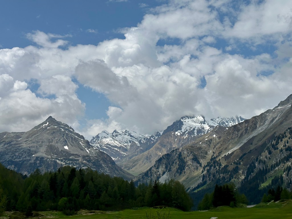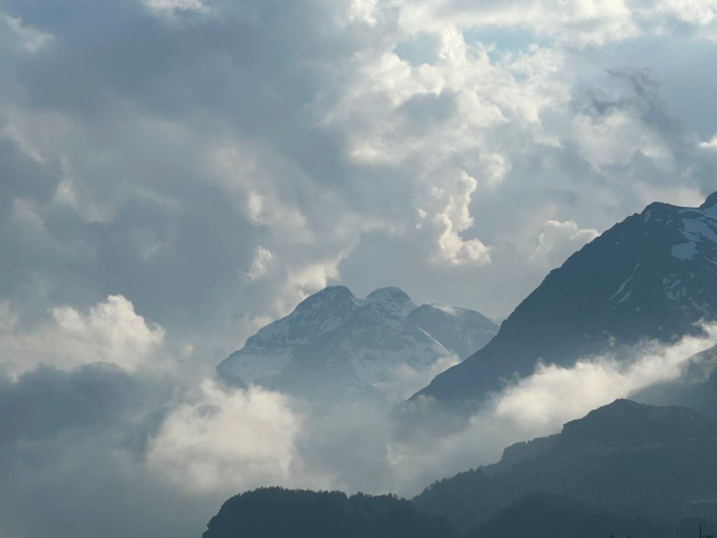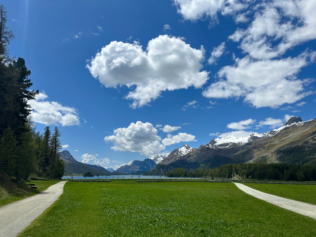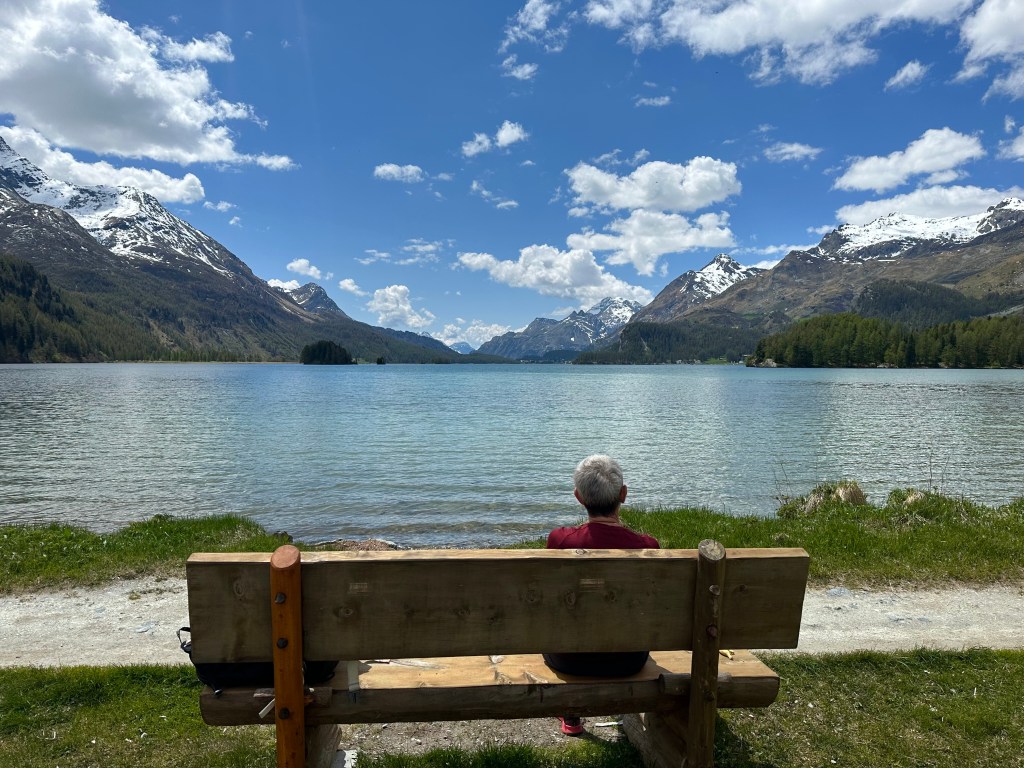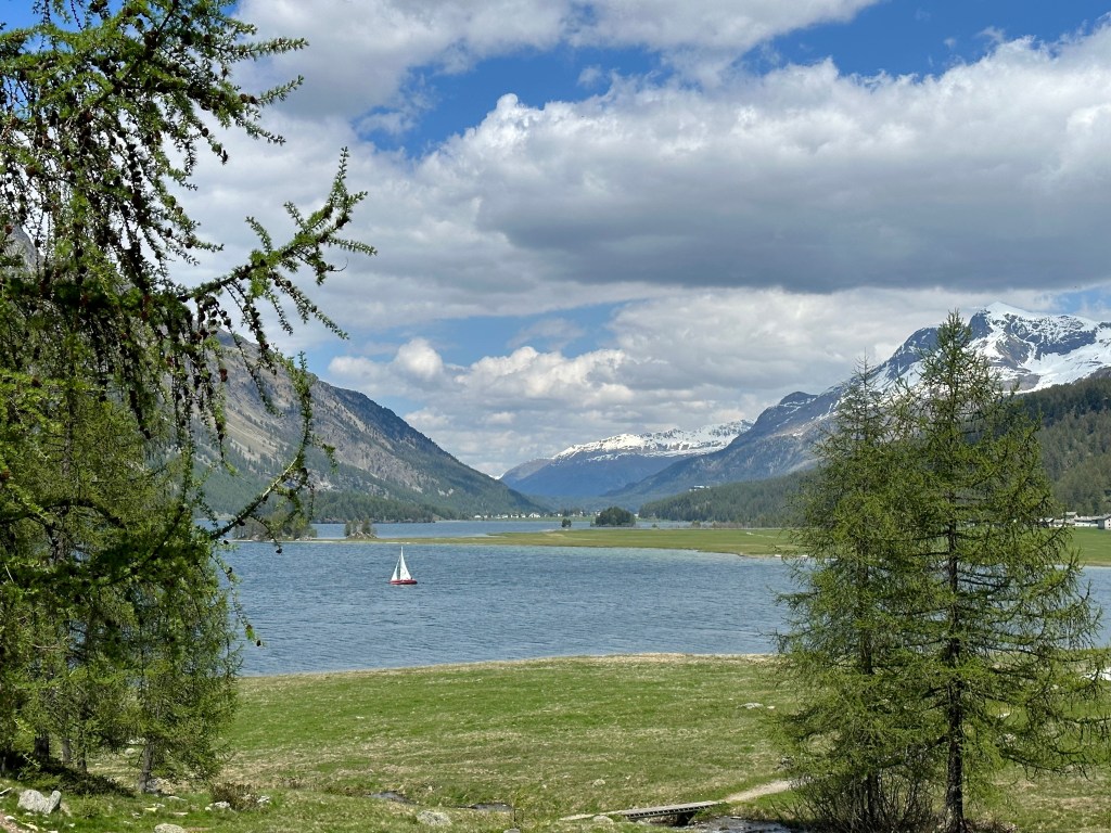 Jag var på vag att fylla lite jämna år igen och någon liten resa brukar det bli, ibland längre och större. Jag var bra nog dålig i början på mars och blev opererad så jag hade då inga tankar på någon resa någonstans. Men tillfrisknandet kom hyggligt snabbt och därmed höjdes humöret och optimism. Det fick bli en resa tänkte vi. Resmålet var svårt att välja. Tankarna gick mot Kroatien, Italien, m.m. Valet blev Schweiz och Sils Maria i Engadindalen. Nära det mer kända St Moritz. Vi bokade 5 nätter på hotell Cervo i det lilla samhället Sils. Ibland säger man Sils Maria. Platsen ligger på ca 1800 m.ö.h. så någon medelhavsvärme kunde vi inte vänta oss. Veckorna före vår tur regnade det mycket hela tiden och det kändes lite kymigt. Men lagom tills vi kom blev vädret bra. Mestadels sol och 10-15 grader. Kanon för vandring och cykling. Säsongen hade inte kommit igång riktigt och det passade bra. Inte så mycket folk överallt och inga köer som under högsäsongen. Italienare m.fl. stormar då in i Dalen. Nära till Italien nämligen.