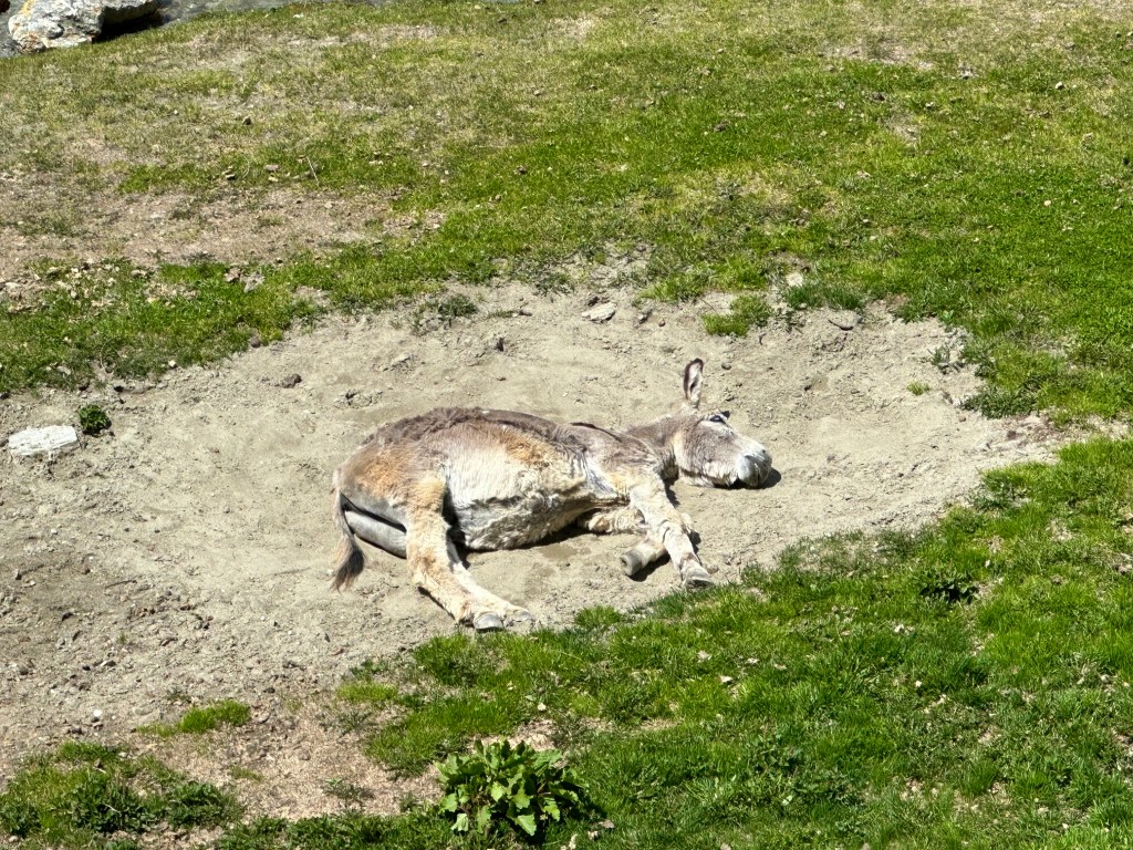En utslagen mulåsna. i IsolaSilersee med byn Isola till höger.Gamla fäbodar i Isola.SilerseeFikapaus före Maloja.
