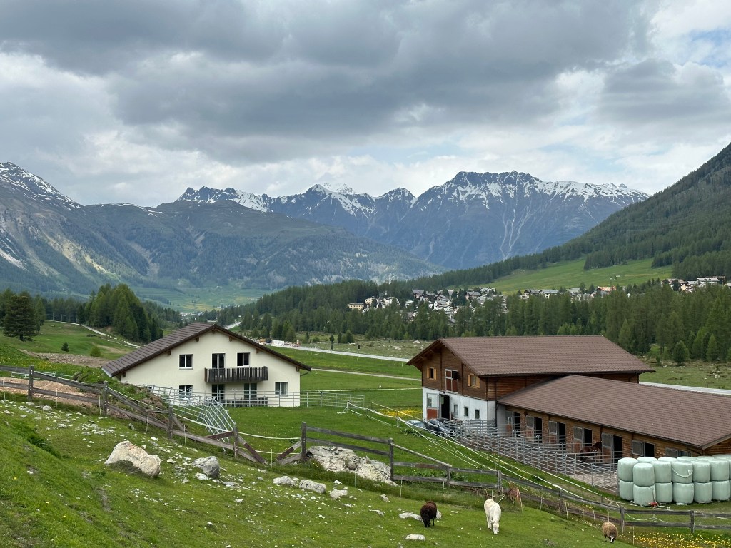 Vi fegade ur och vände.Pontresina på håll.PausVal Roseg