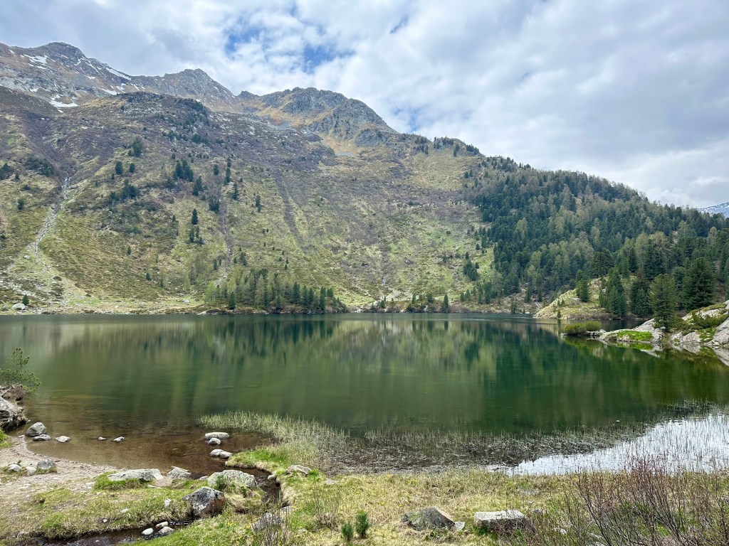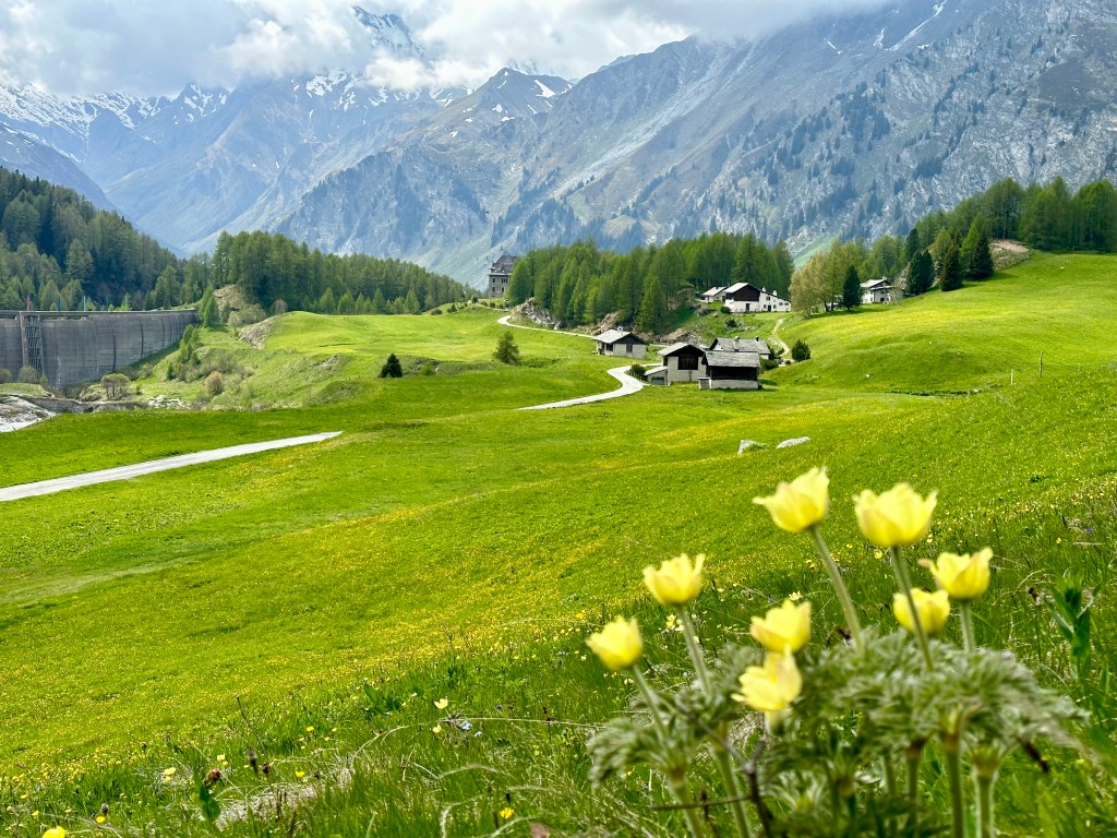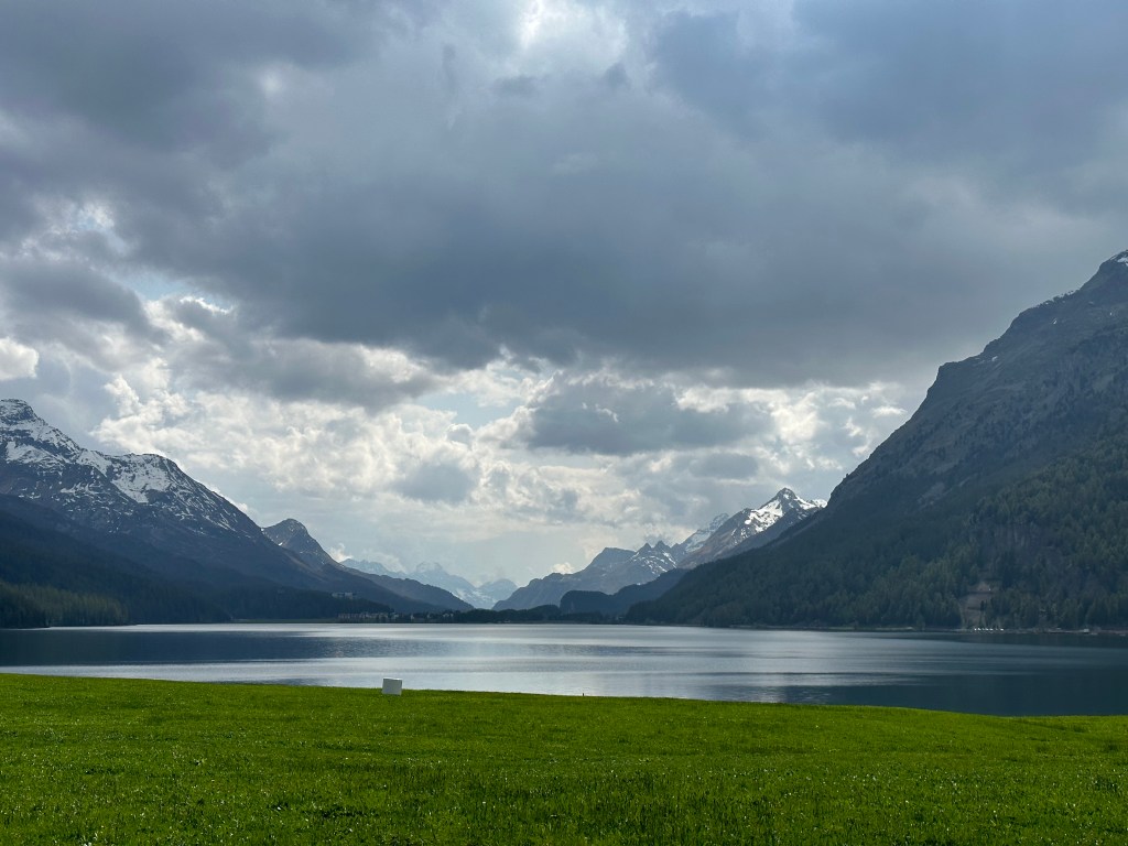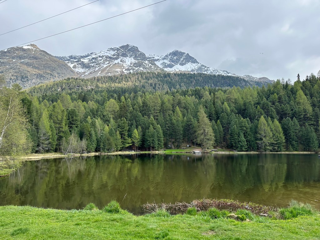 Hyggligt vackert i början på turen. Detta är strax utanför Maloja.Lake Cavloc, en fjällsjö på 1900 m.ö.h.
