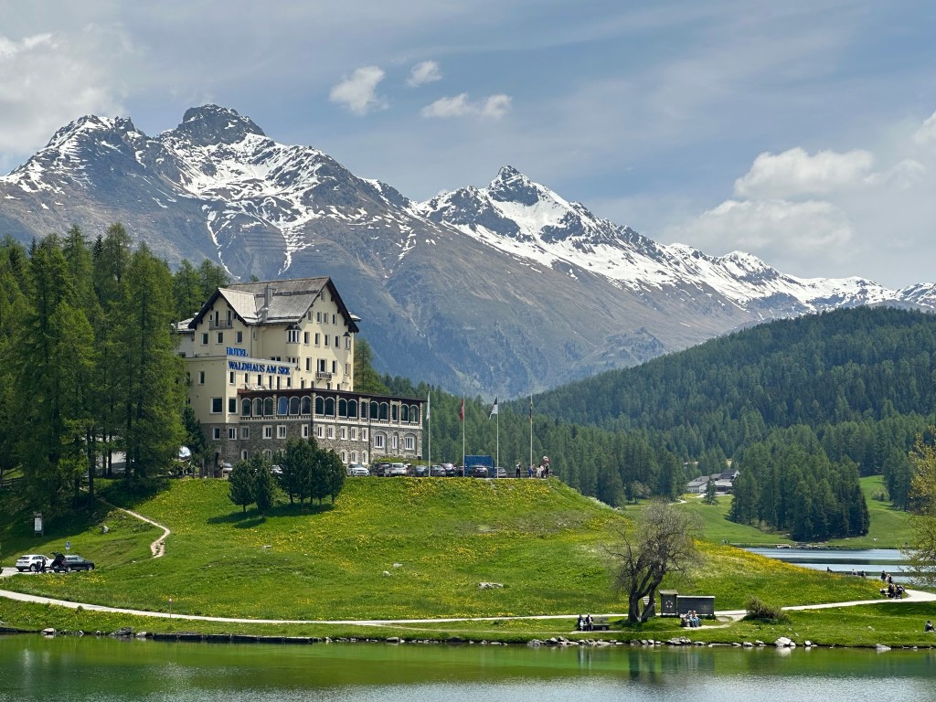 En sak vill jag stanna till lite vid, det är Hotel Waldhaus i Sils. Ett stort ”lyxigt” hotell från 1908 tror jag. De flesta rummen är intakt från starten, i stort sett alltså. De har städats och fått moderna badrum.Jag och bror min Ulf har bott där en gång. Vi skulle åka Engadin ski Marathon, vilket han gjorde, men jag blev sjuk. Under vinter OS i St Moritz 1948 bodde svenska längdskidlandslaget där. Det lyckades bra för di svenske, inte minst för Mora-Nisse som tog guld på 50 km. Hans största idrottsliga triumf. Jag har gjort en fotobok om Mora och tänkte lämna in en till Hotel Waldhaus bibliotek. Nisses födelsehem i Östnor var med i boken, lite kuriosa i alla fall. Jag skulle även göra reklam för Mora-Nisses webbplats där många bilder finns med från OS och flera från Hotel Waldhaus. http://www.moranisse.se