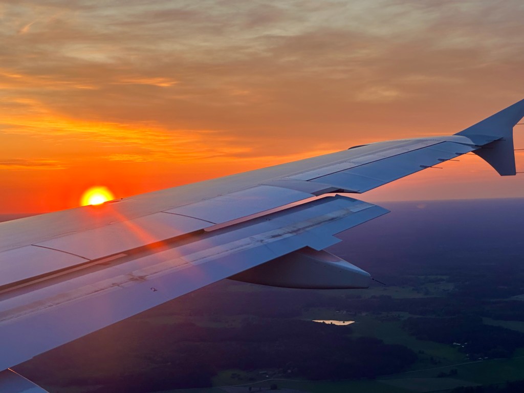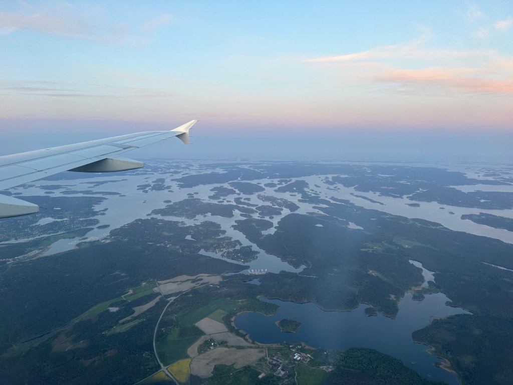 Vi hann precis hem till solnedgången på Arlanda flygplats.
